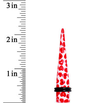Hypoallergenic jewelry for sensitive skin.10mm ear taper. This white acrylic ear plug features multiple red hearts. Heart ear expender featuring two rubber O-rings. Body piercing ear taper sold individually.