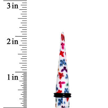 Hypoallergenic jewelry for sensitive skin.10mm ear taper. This white acrylic ear plug features colorful butterflies. Butterfly ear expender featuring two rubber O-rings. Body piercing ear taper sold individually.