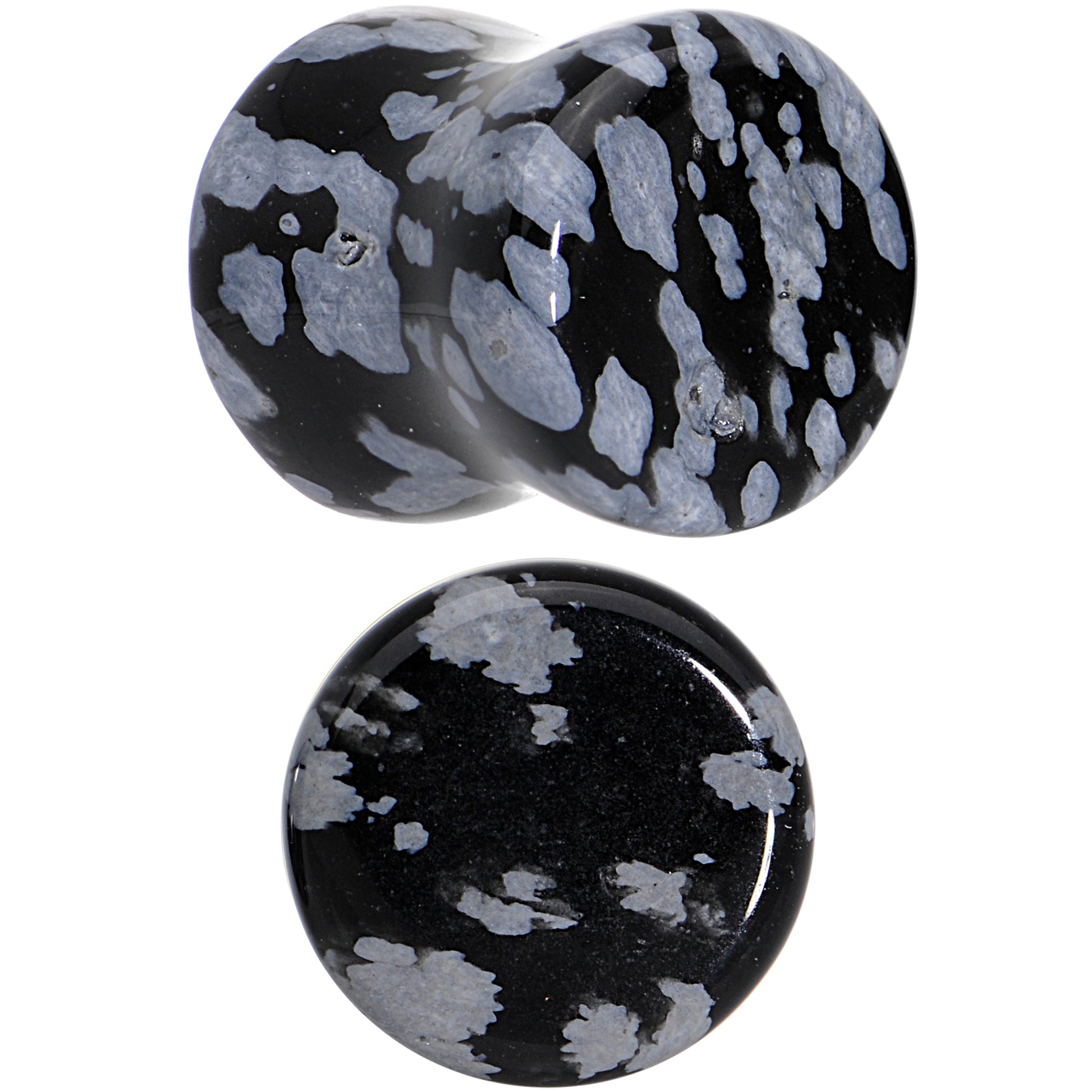 00G Obsidian Snowflake Natural Stone Saddle Plug Set