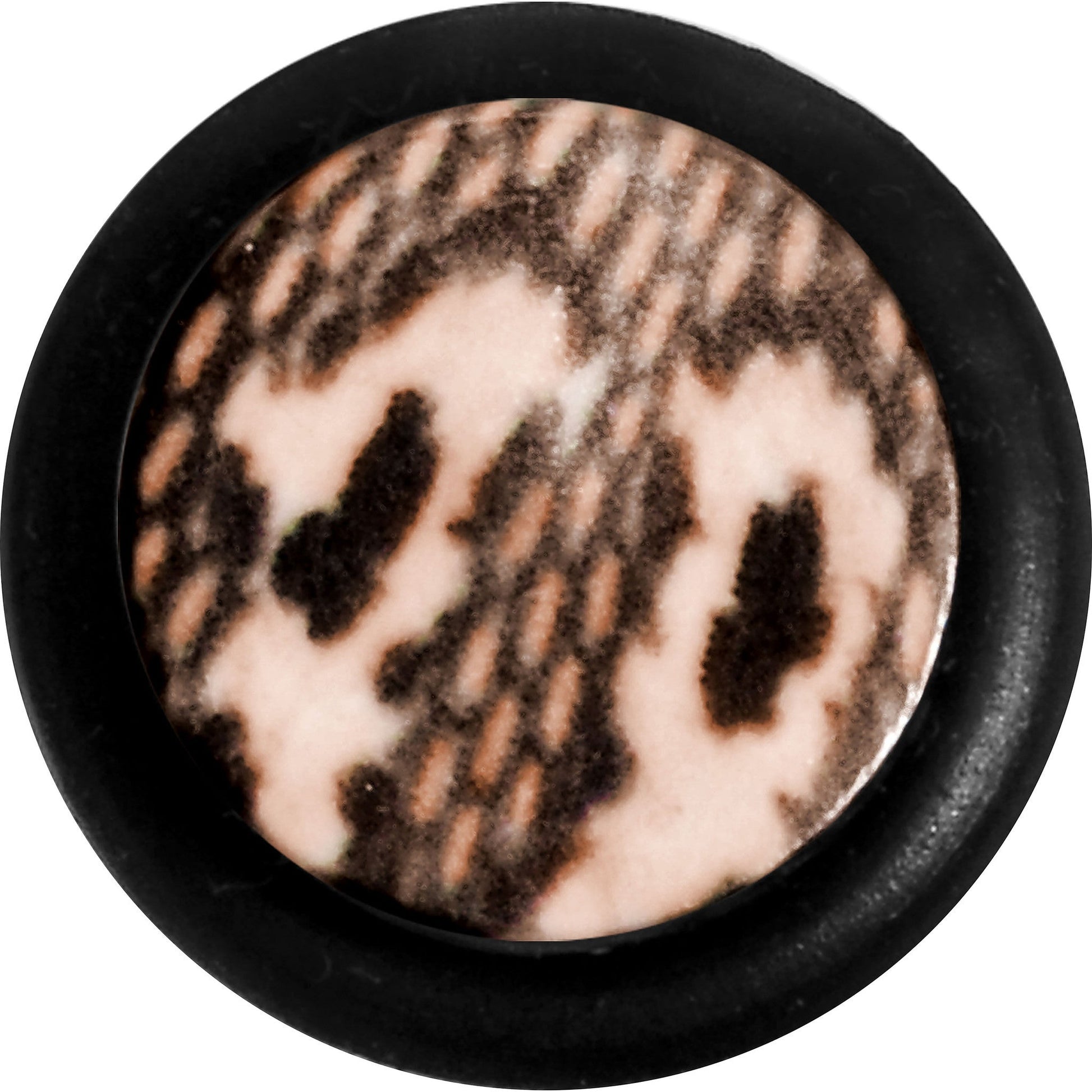 Hypoallergenic jewelry for sensitive skin.Taper plug sold individually, purchase a quantity of 2 for a pair. Acrylic body jewelry ear taper with a snake skin design. 8mm taper expander with slithering style.