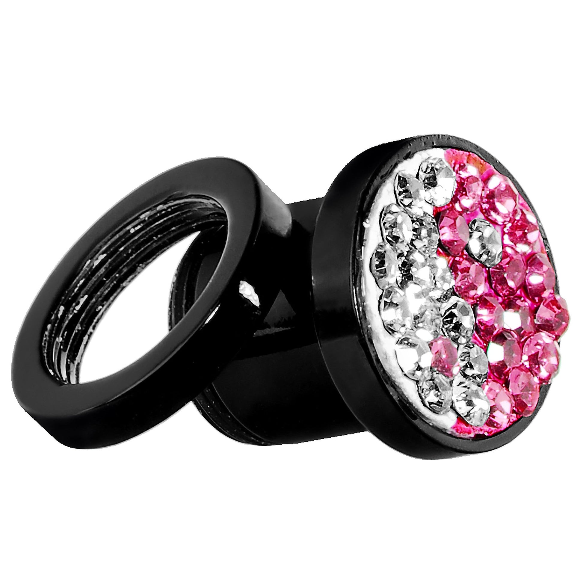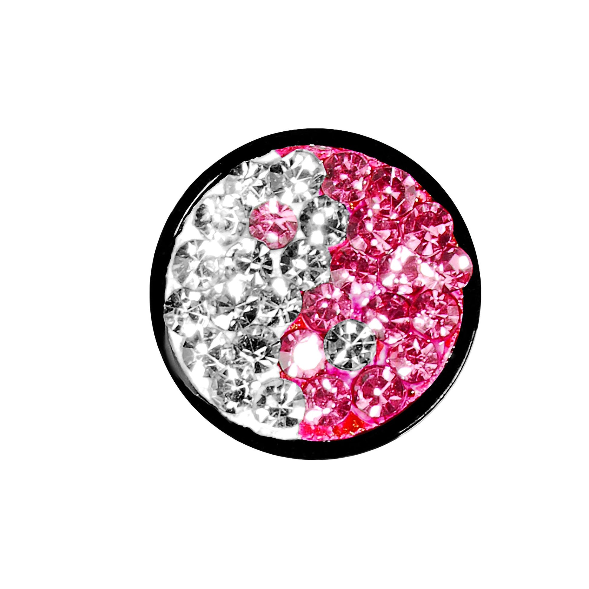 0G Pink Crystal Ferido Yin Yang Acrylic Screw Fit Tunnel