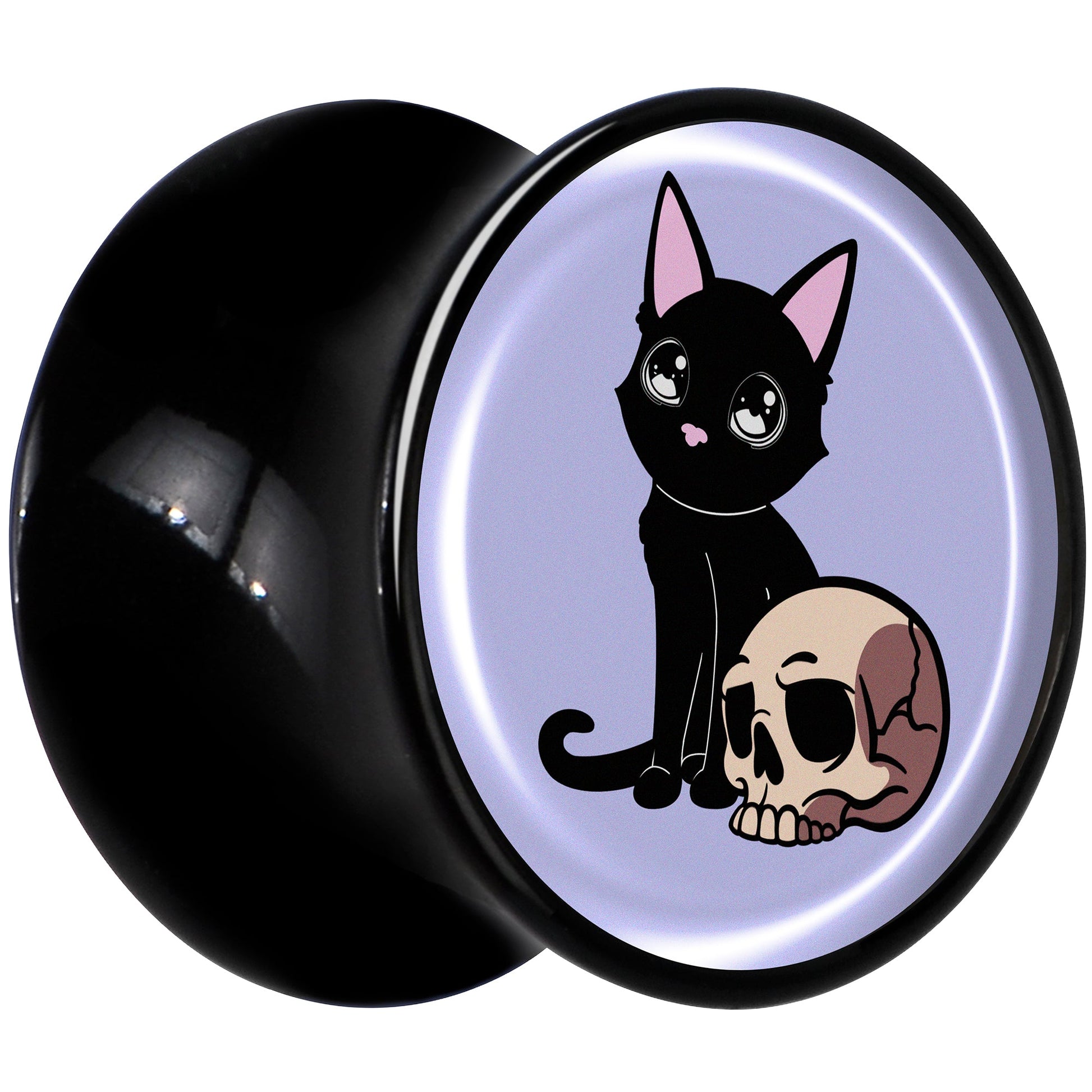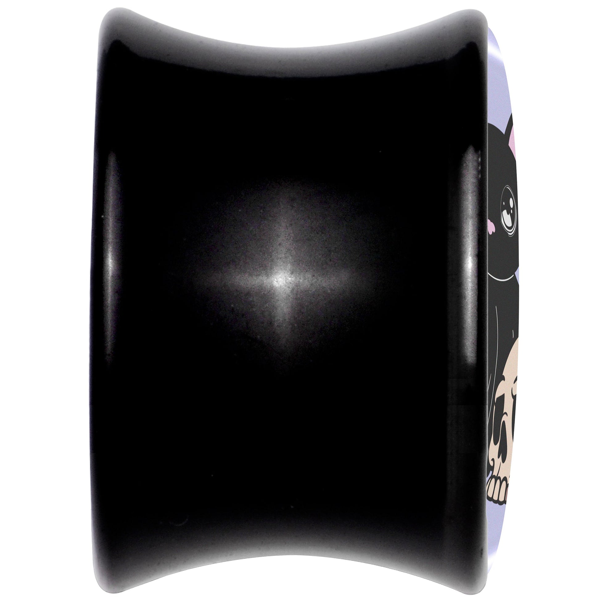 0 Gauge Skull Cat Black Acrylic Saddle Plug Set