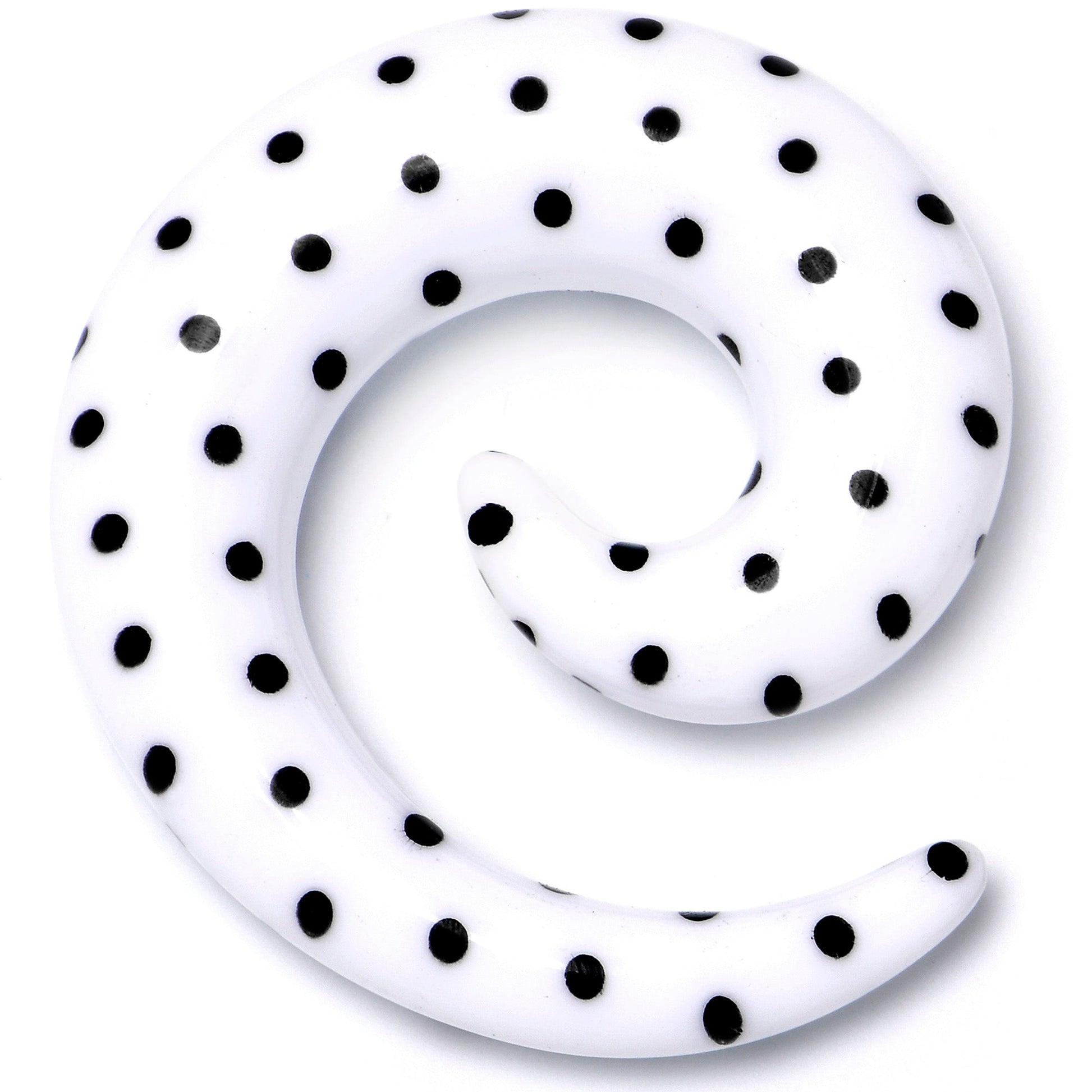 Hypoallergenic jewelry for sensitive skin.0 Gauge White Acrylic Polka Dots Black Spiral Taper Set