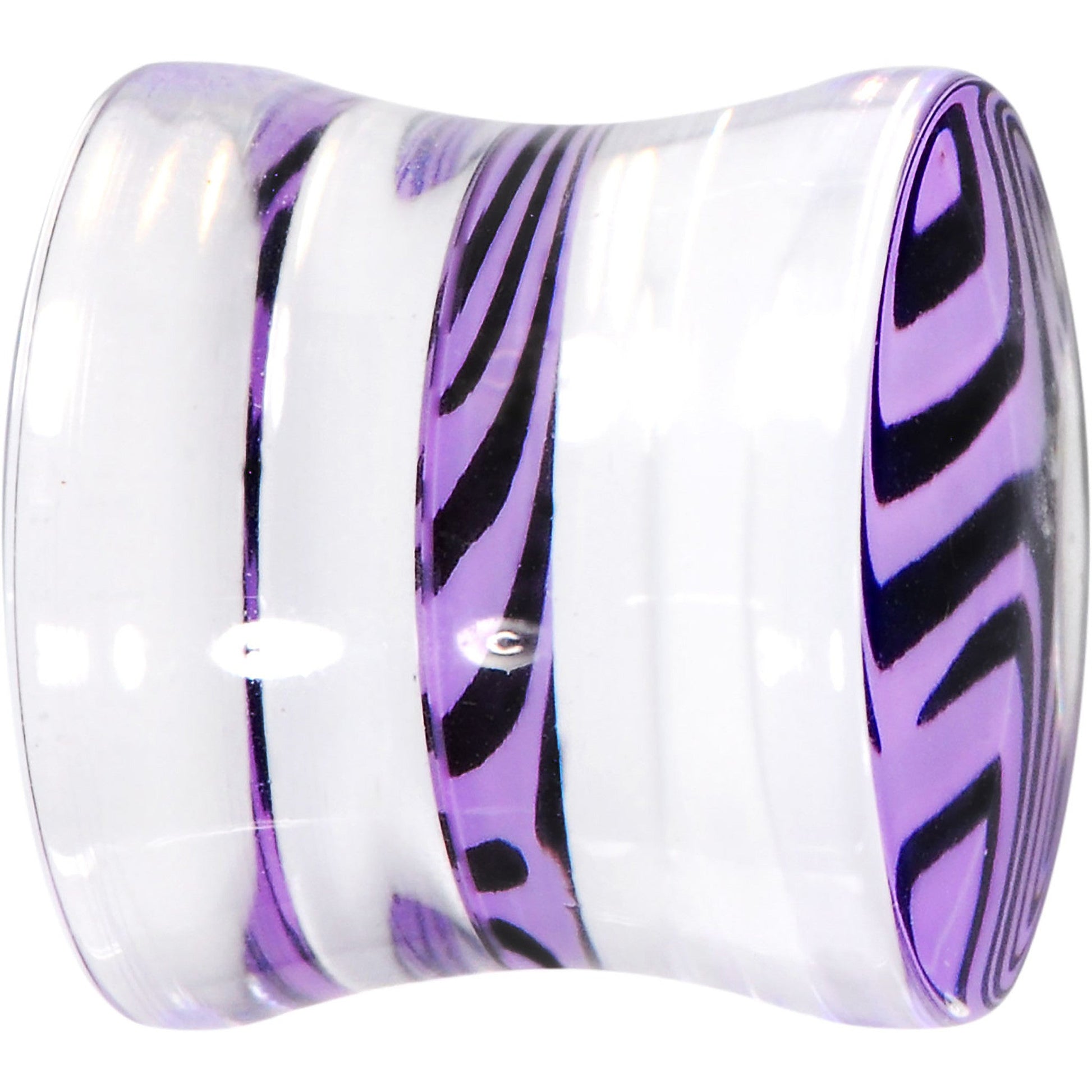 Hypoallergenic jewelry for sensitive skin.Sold Individually, Please purchase a quantity of 2 for a pair. 12mm acrylic plug Body Jewelry.Clear acrylic plug with a purple zebra print inlay. Show off your stripes with this animal print ear plug.