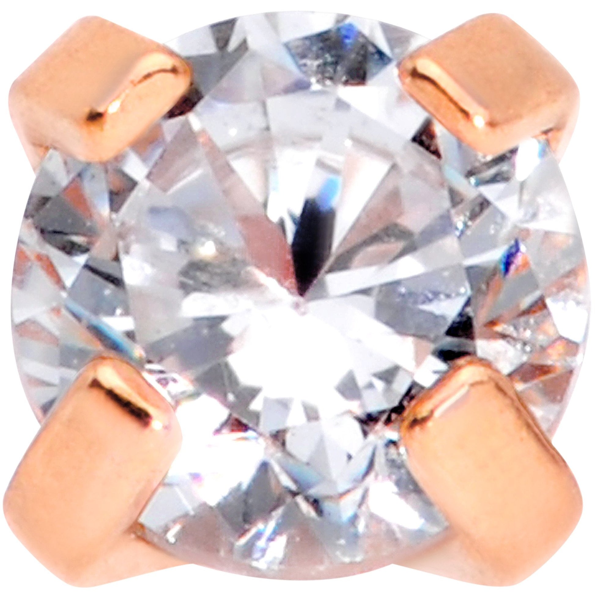 If you love simple yet stylish labret jewelry, then you will love this 16 gauge flatback barbell. Made with a 6mm rose gold titanium IP over 316L surgical grade stainless steel straight post, this labret piercing features an internally threaded 3mm clear gem end. Features a flat back that is perfect for a labret, monroe piercing, or even a cartilage piercing.