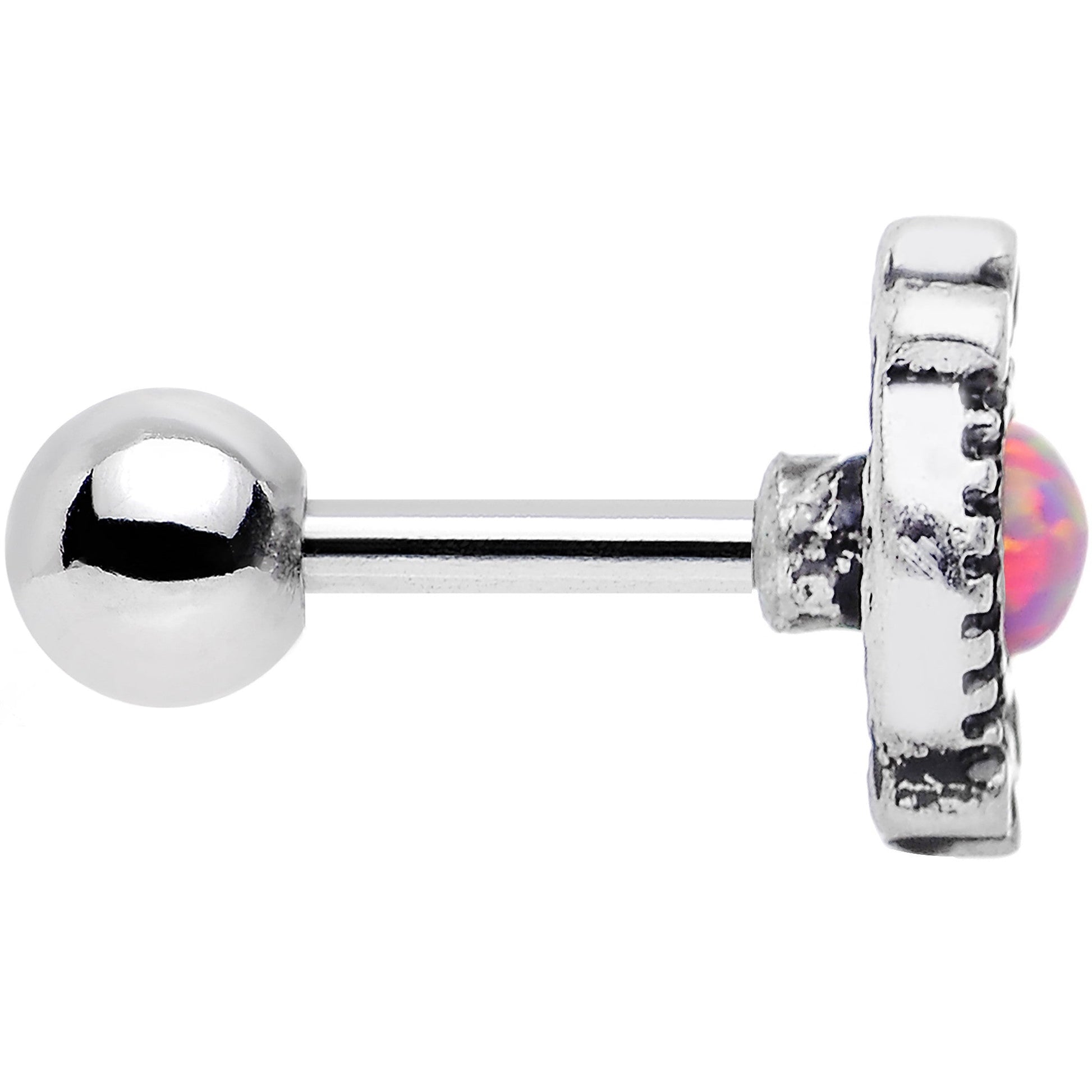 For a timeless, classic look all around, this tragus cartilage earring fits the bill without you having to sacrifice too many bills from your wallet. This cartilage earring features an antiqued elegant frame setting for its iridescent pink imitation opal accent. Your ear will thank you for the 316L surgical grade stainless steel 1/4" straight barbell that is a part of this tragus body jewelry, since it provides for a comfortable and safe fit in your cartilage piercing.