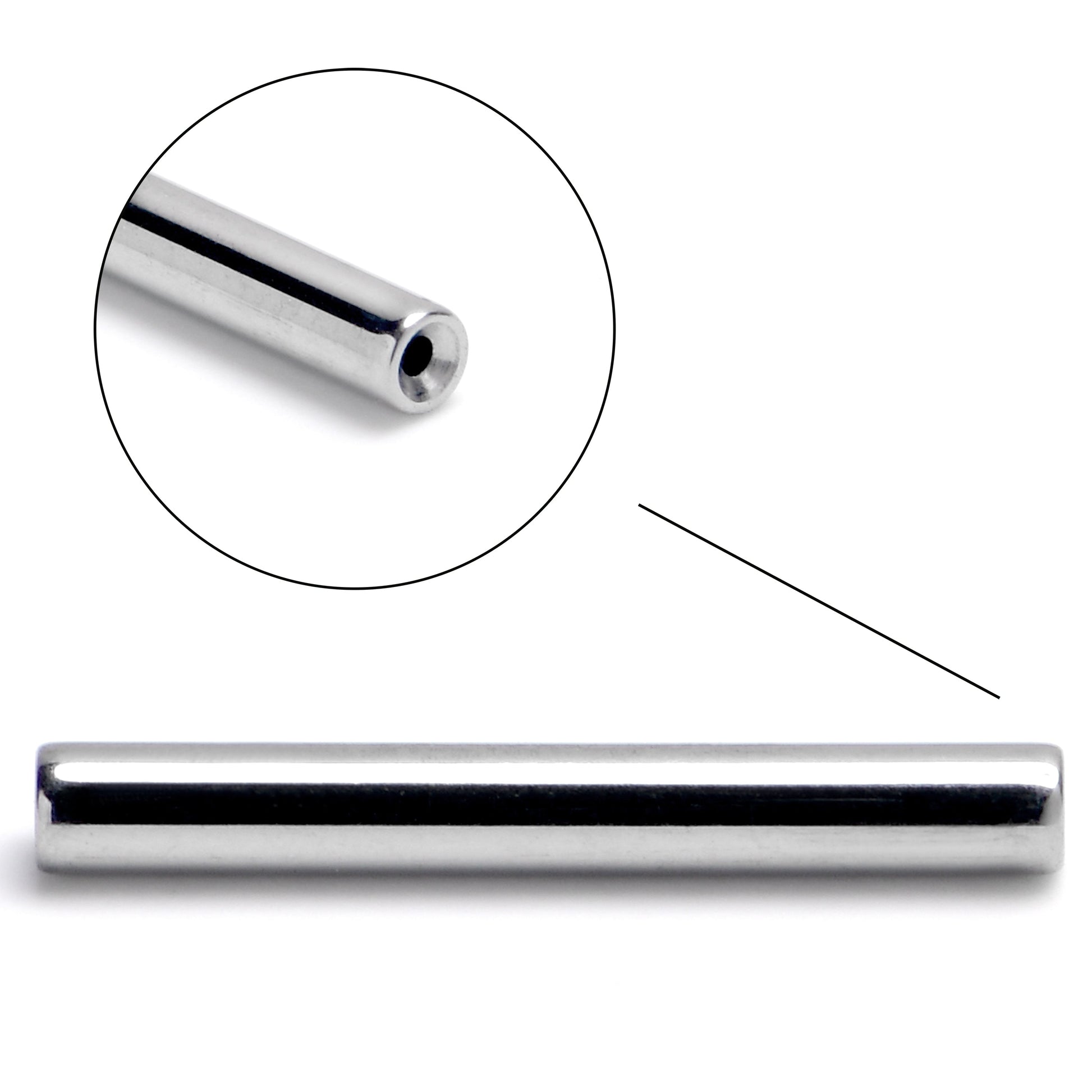 Cover your basics with quality and endless style options when you're rocking this 14 gauge replacement barbell. It is made with a 12mm durable ASTM F-136 implant grade titanium straight barbell. It features a threadless design, making insertion and removal a breeze. The threadless design also allows you to easily change the ends, making for a virtually infinite number of style options. This barbell does not come with ends. Start your look from the ground up with this threadless straight barbell.Specifications