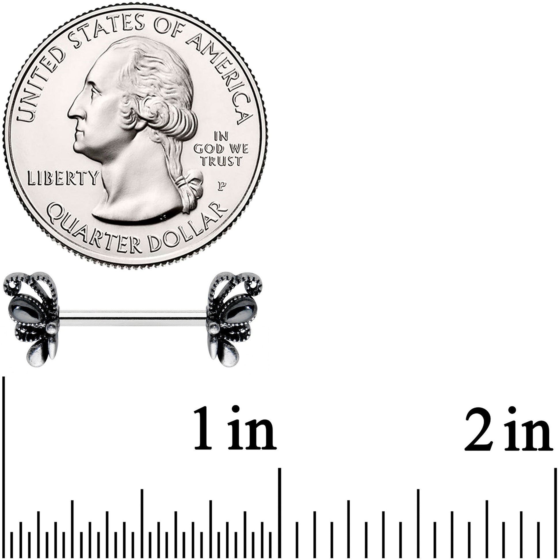 14 Gauge 1/2 Black Gem Abstract Bow Barbell Nipple Ring Set