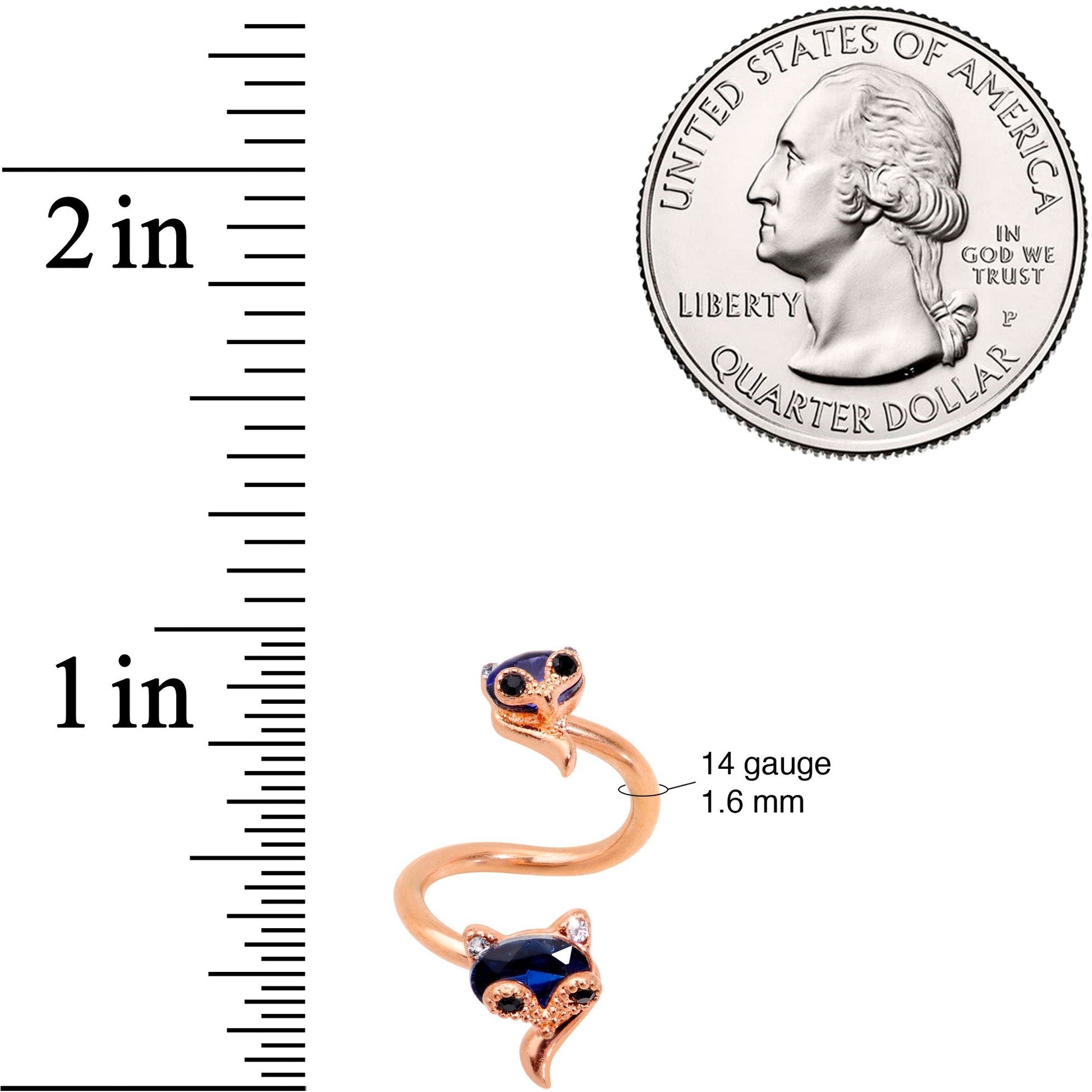 14 Gauge 1/2 Blue Gem Rose Gold Tone Fox Spiral Twister Belly Ring