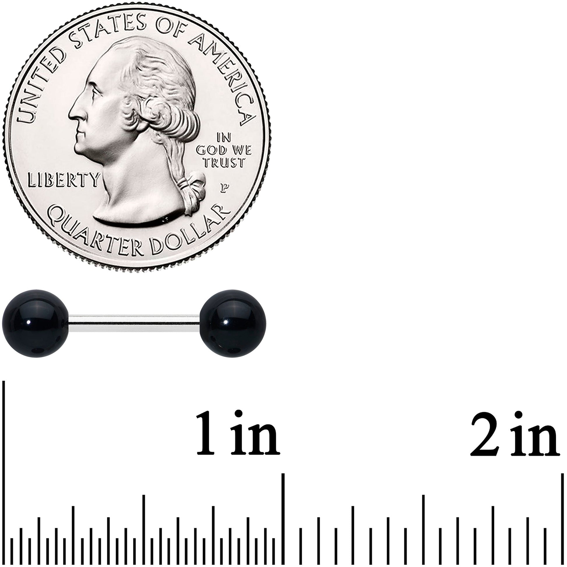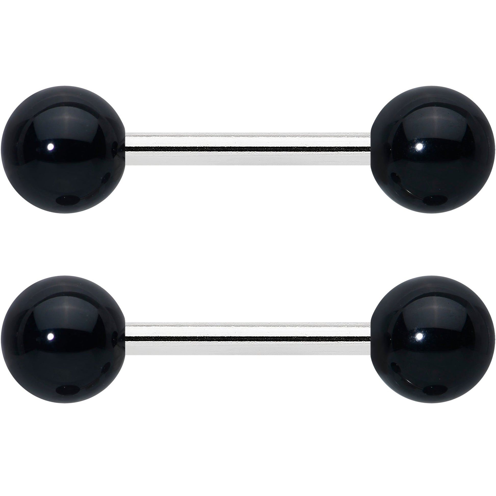 14 Gauge 1/2 Elegant Black Agate Barbell Nipple Ring Set
