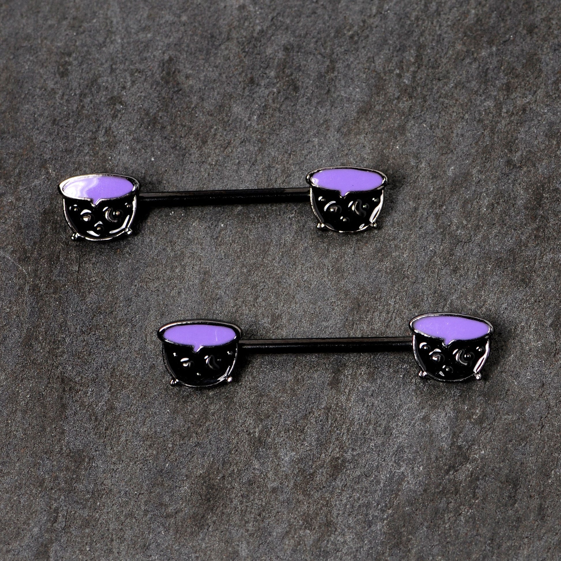14 Gauge 11/16 Black Purple Cauldron Halloween Barbell Nipple Ring Set