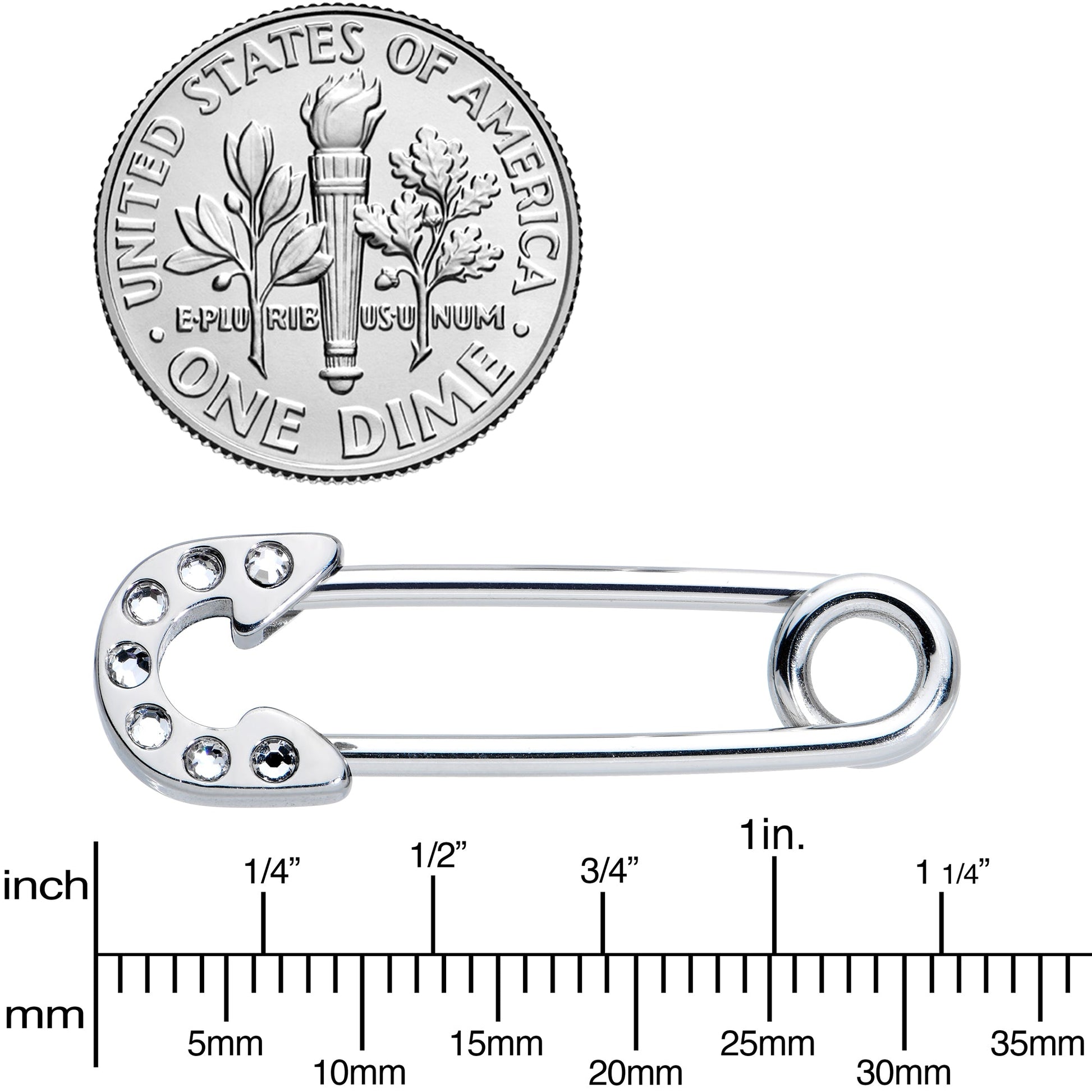 Old school punk gets a glamorous update with this 14 gauge nipple jewelry! It's made with 19mm durable 316L surgical grade stainless steel straight barbells that are shaped exactly like a giant safety pin! They're embellished with clear gems to add an uptown touch to hardcore style. Guaranteed to hold your look together, this nipple piercing jewelry just needs a pair of combat boots and a mohawk for a trip back in time to the golden days of punk rock. Sold as a set of two.Specifications
