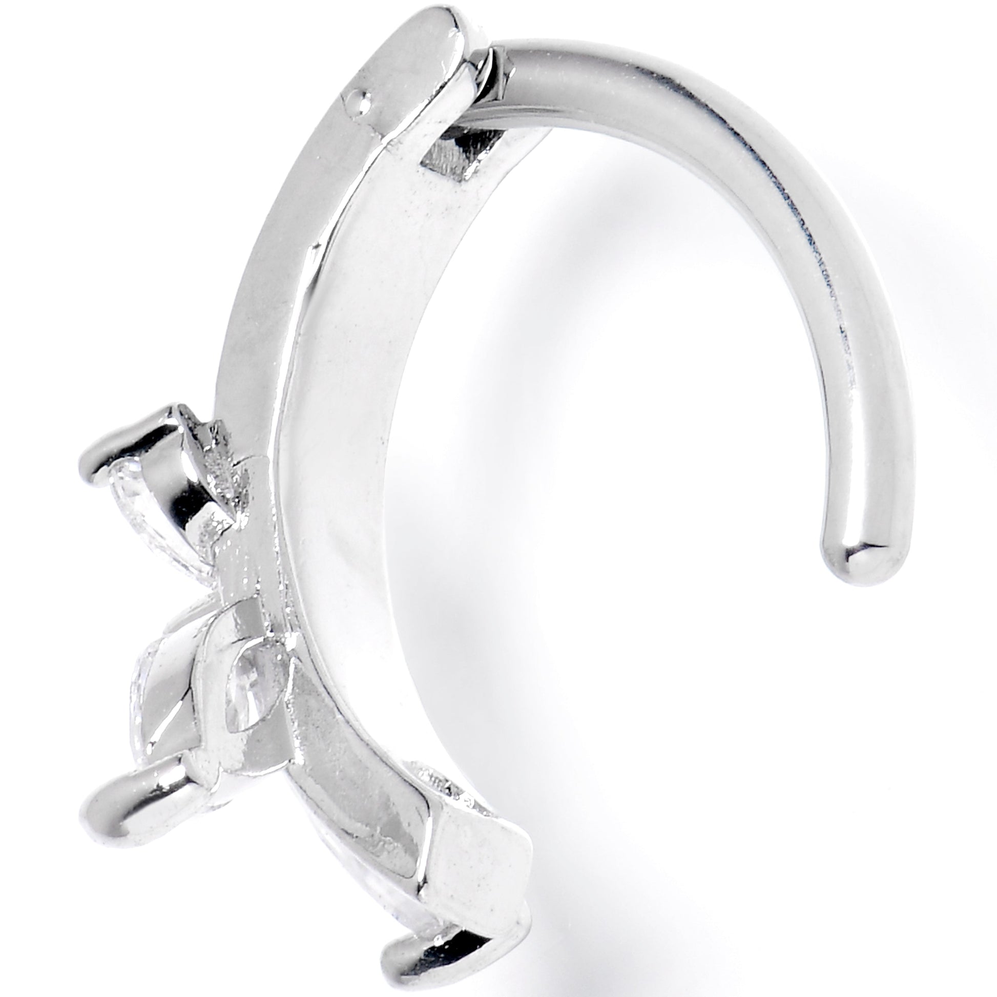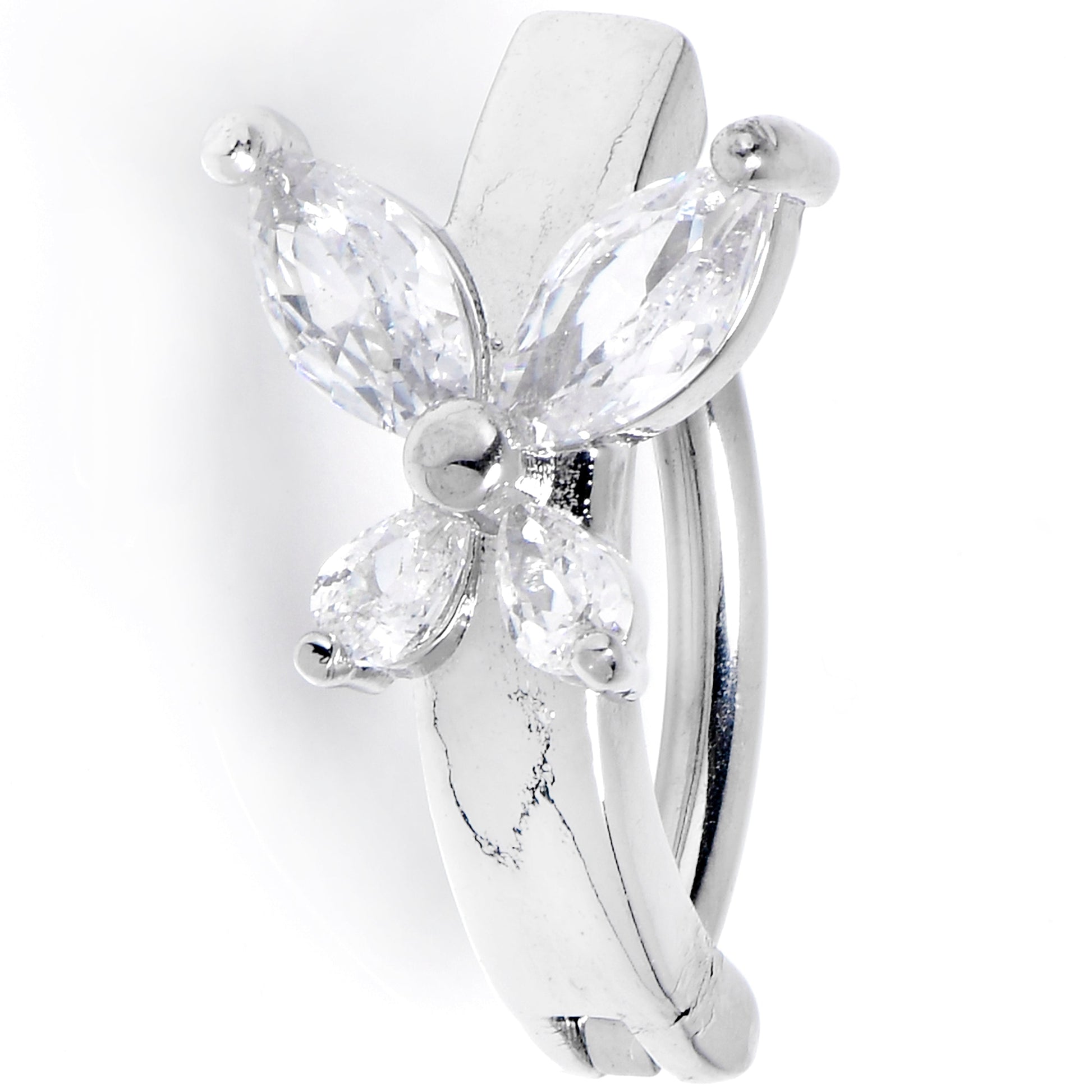 14G 3/8 Clear CZ Gem G23 Titanium Butterfly Hinged Hoop Belly Ring