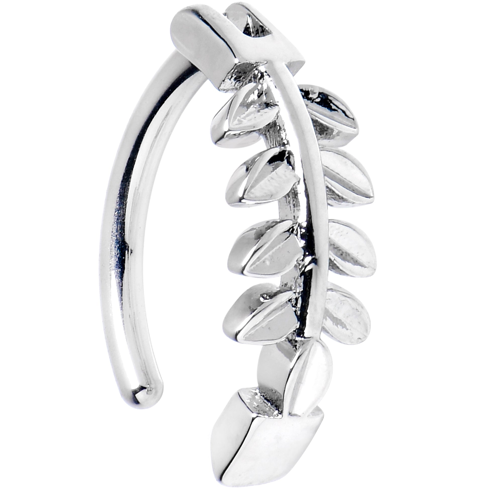 Get fashion forward with this 14 gauge navel ring. It is made with a 10mm solid Grade 23 implant grade titanium hinged circular ring. It features a forward facing design with a leafy branch charm for a look of natural beauty that doesn't overwhelm. It also features a non-removable, hinged segment that makes insertion and removal a breeze. You can face the day looking simply gorgeous with this elegant belly piercing jewelry.Specifications