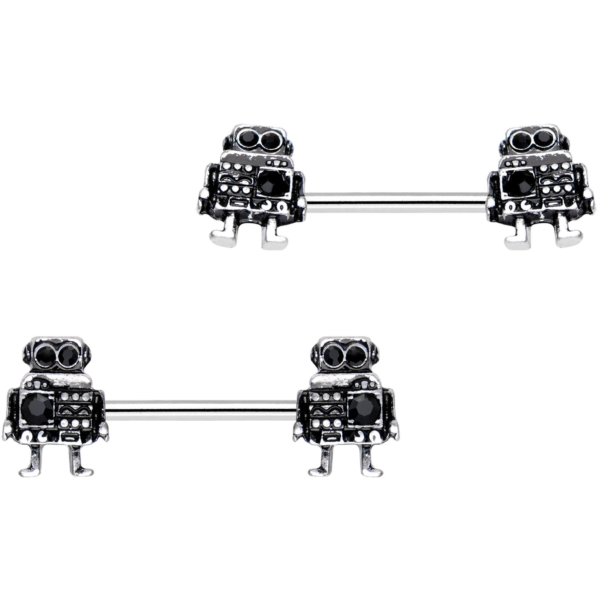 Bleep, bloop, blip, I'm a robot! Wear these cute robots all the time with these awesome barbell nipple rings. Made with 10mm in length durable 316L surgical grade stainless steel straight barbells, these nipple piercings feature stylish robot charms. This is the perfect industrial jewelry to geek out to! Sold as a set of two for you!