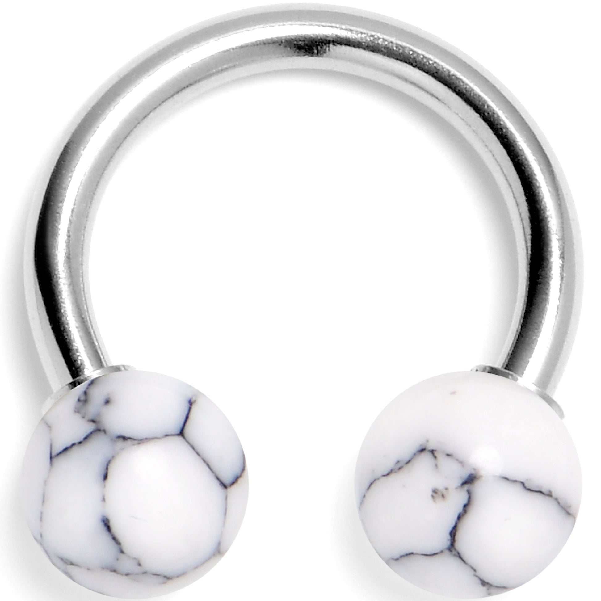 14 Gauge 3/8 White Howlite Natural Stone Horseshoe Circular Barbell