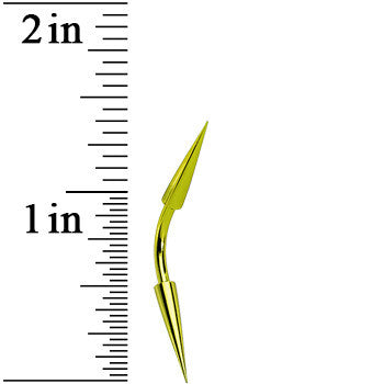 This yellow anodized titanium barbell combines crazy amounts of shine with dangerous-looking spikes. 14 gauge curved barbell can be used in multiple piercings.