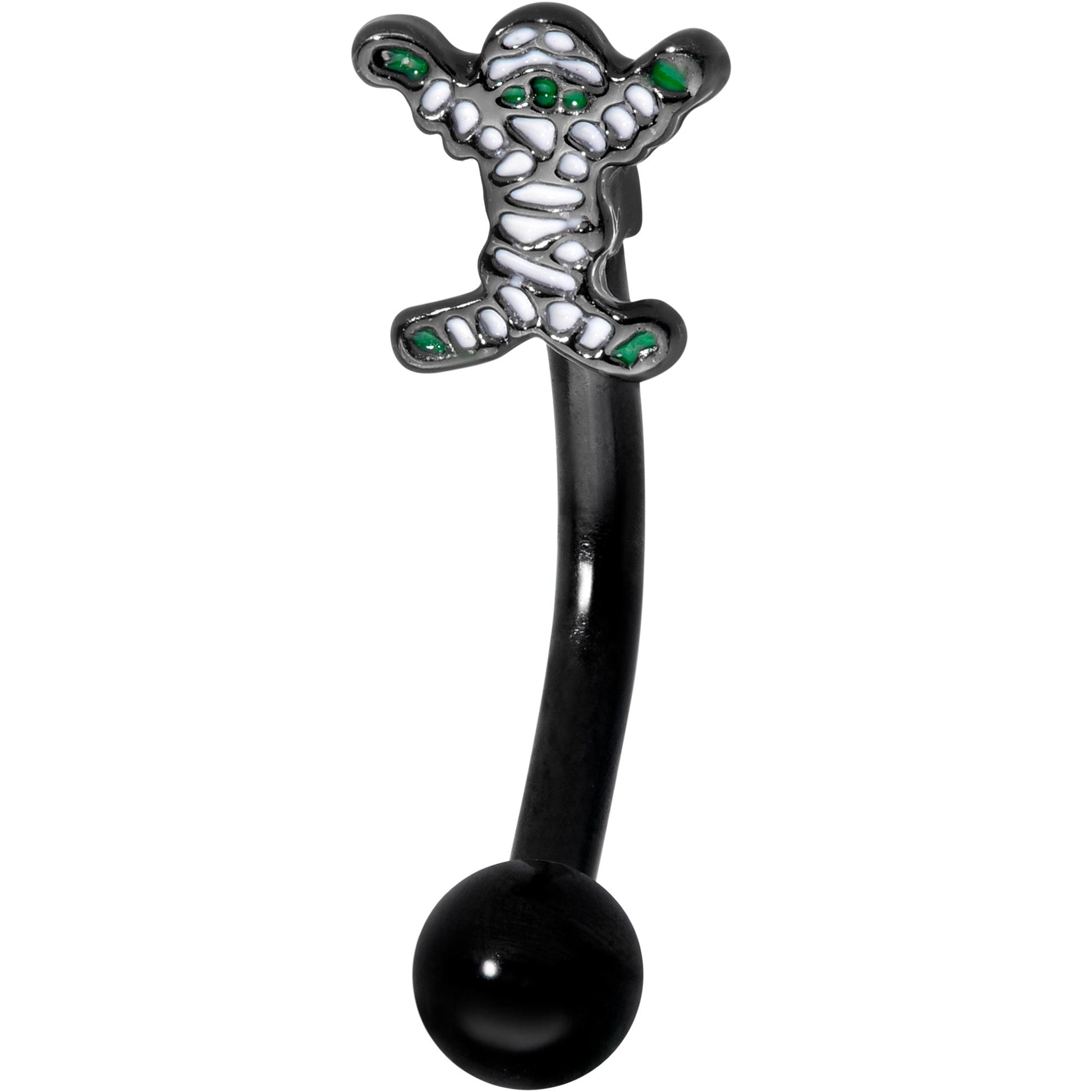 14G 5/16 Black Green Mummy Halloween Curved Eyebrow Ring