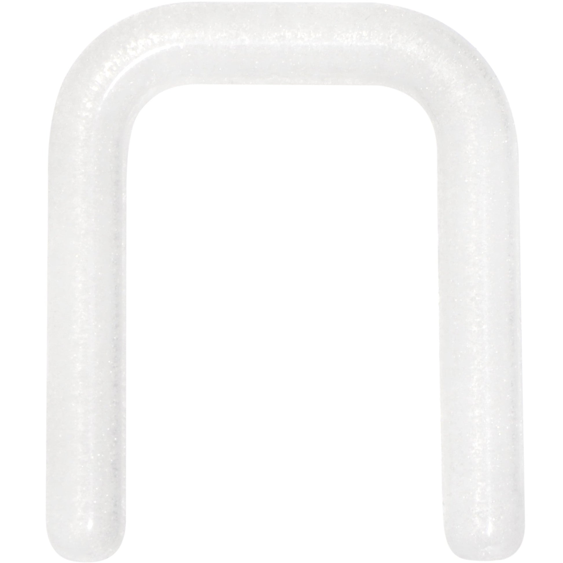 This 14 gauge flexible white glow in the dark Bioplast retainer for your septum piercing can be used to conceal piercings or in place of a normal septum ring. It can also be worn as a piece of fun glow in the dark nose jewelry! This 8mm square retainer can be flipped up into the nostril following insertion in order to better hide your septum jewelry.