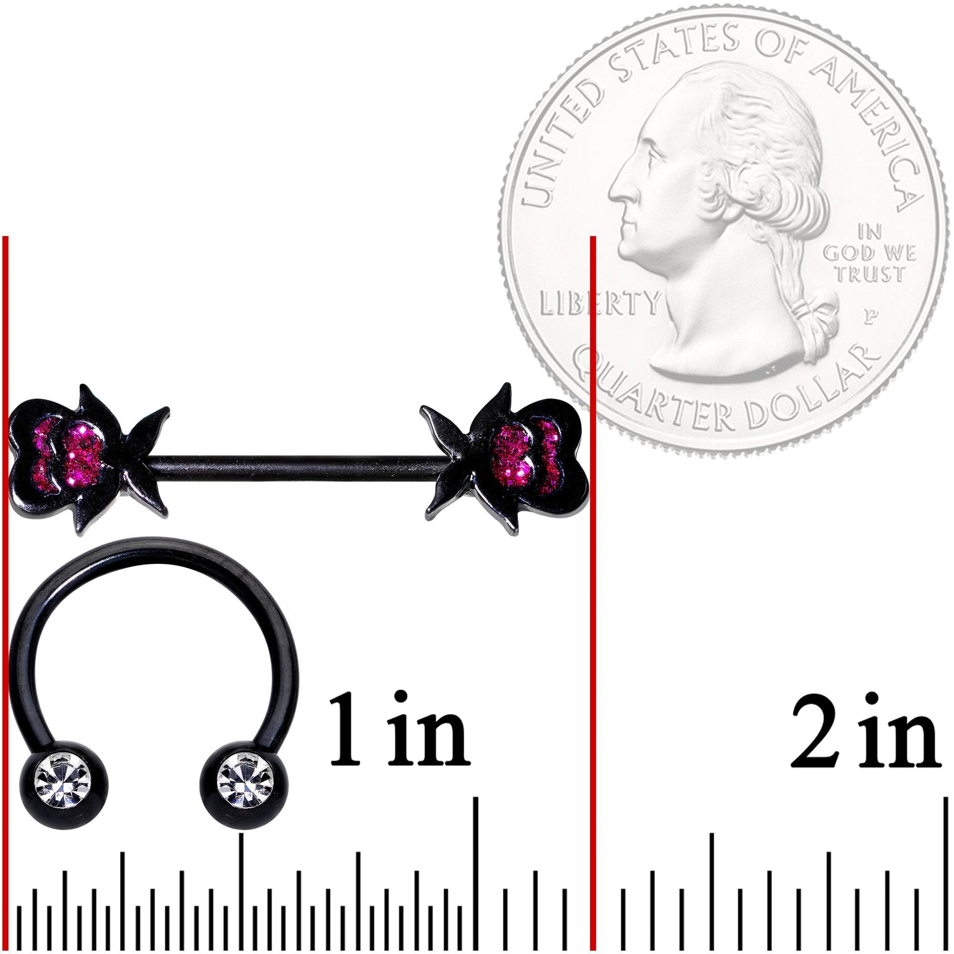 14 Gauge 5/8" 1/2" Clear Gem Black Horseshoe Barbell Nipple Ring Set