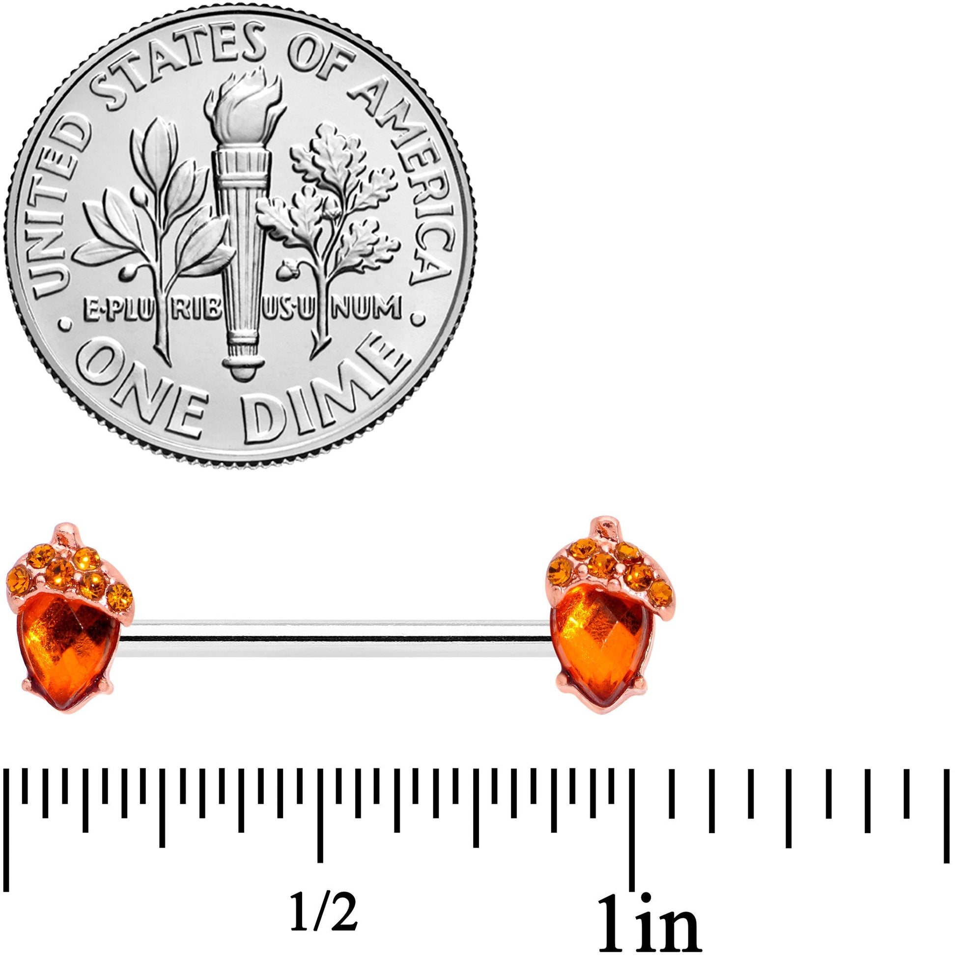 14 Gauge 5/8 Brown Gem Fall Autumn Acorn Barbell Nipple Ring Set