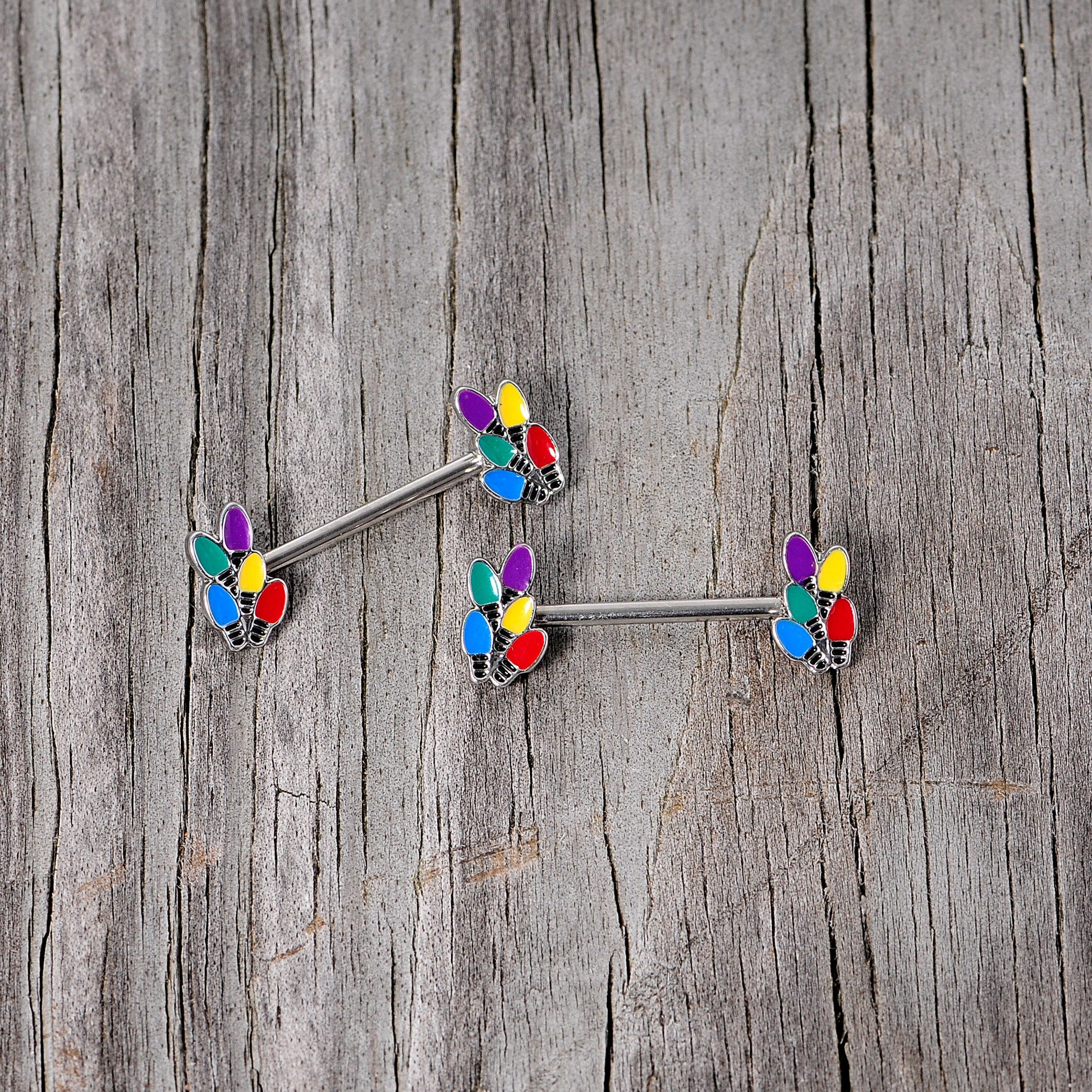 14G 5/8 Christmas Lights Holiday Barbell Nipple Ring Set