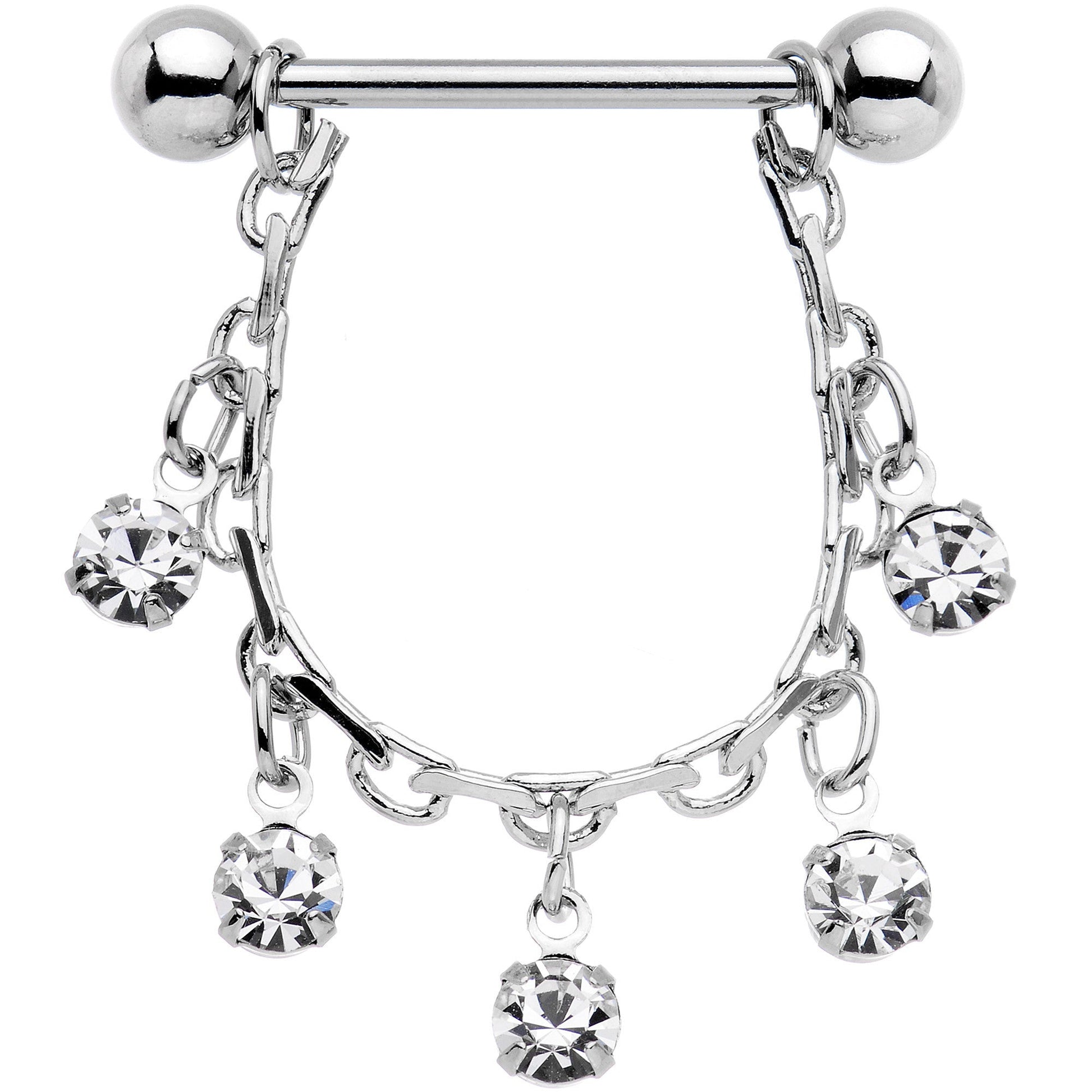 14G 5/8 Clear Gem Chain Drop Dangle Nipple Ring Set