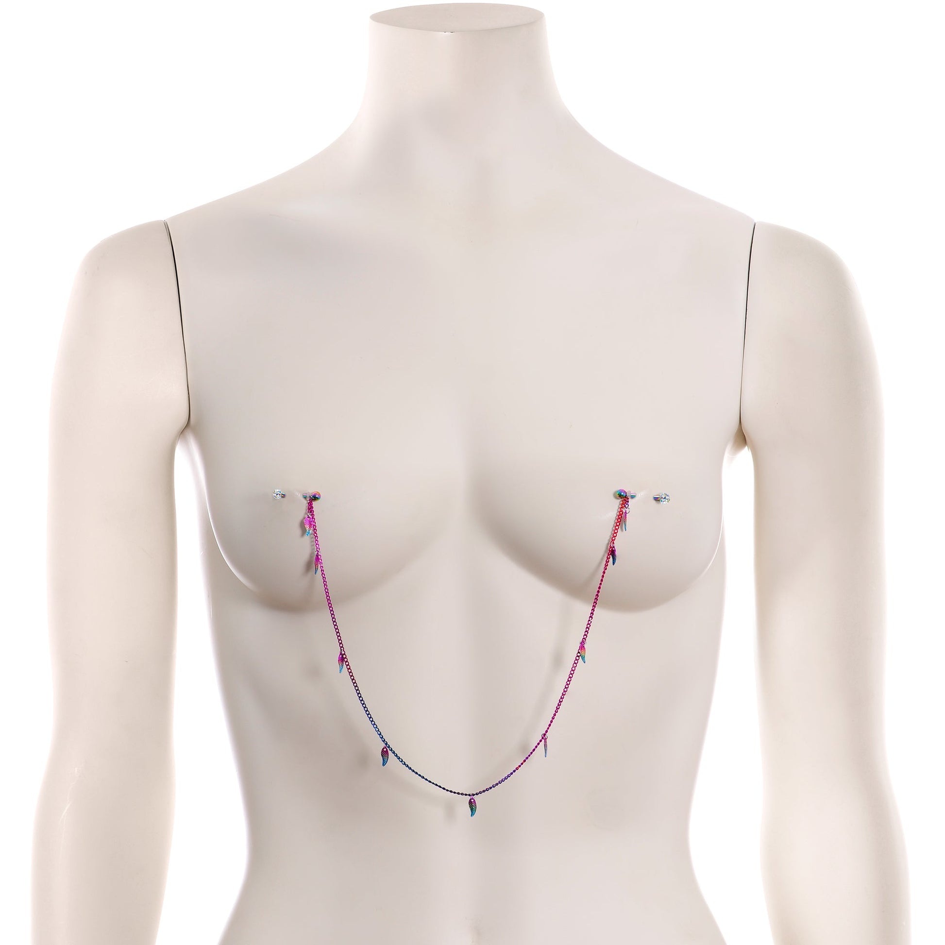 14G 5/8 Clear Gem Rainbow Autumn Leaves Dangle Nipple Chain