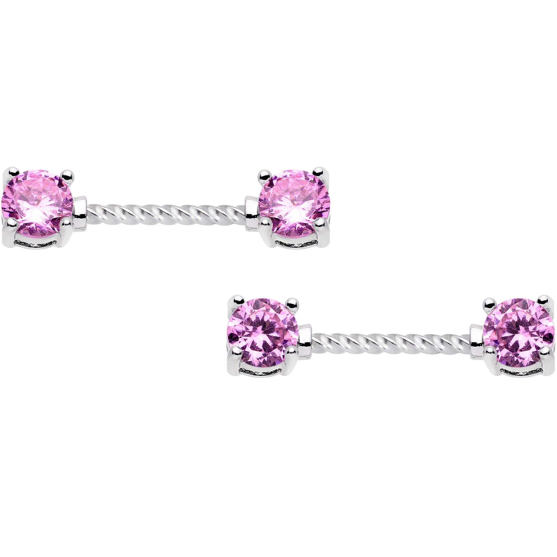 Pink CZ Gem Captive Ring Twisted Straight Barbell Nipple Ring Set