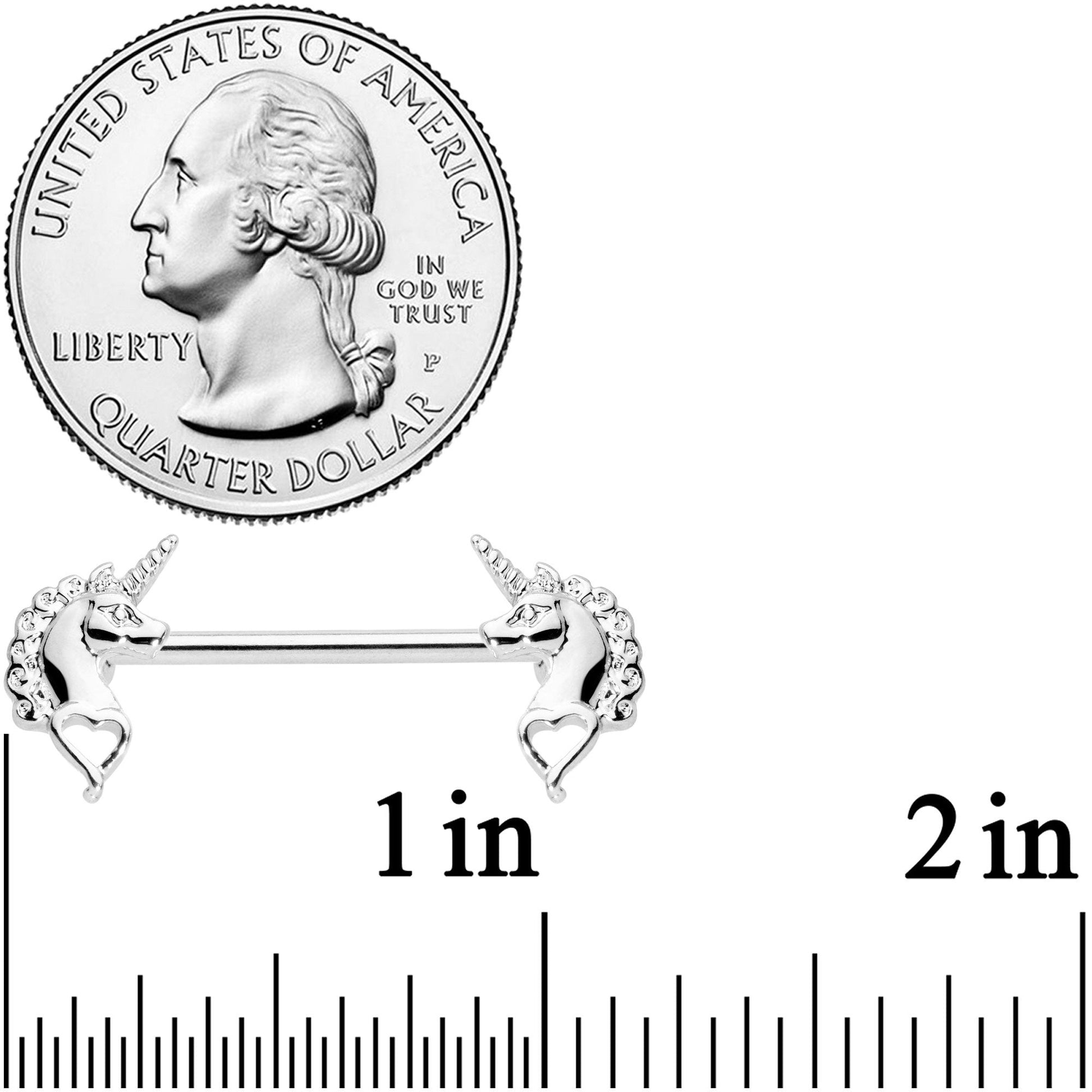 Unicorns are so rare that people think they don't exist. But here are four of them, come to accentuate your 14 gauge nipple piercings with their splendor! Made with 16mm durable 316L surgical grade stainless steel straight barbells, these nipple piercings are truly the fairest creatures in the land as well the toughest! Sold as a set of two.Specifications