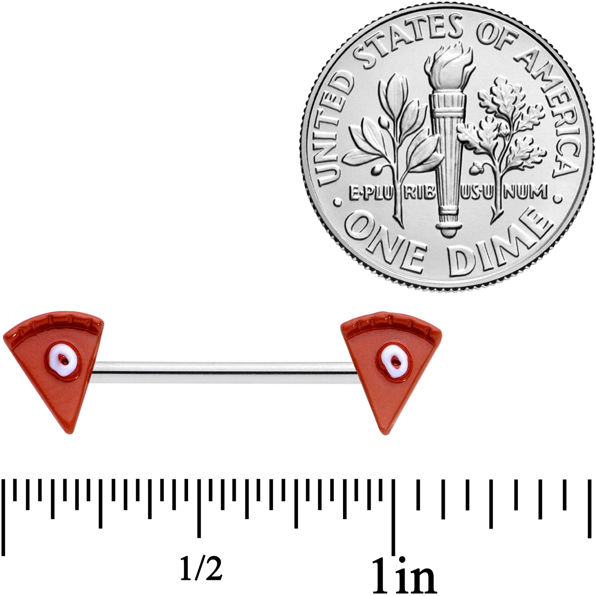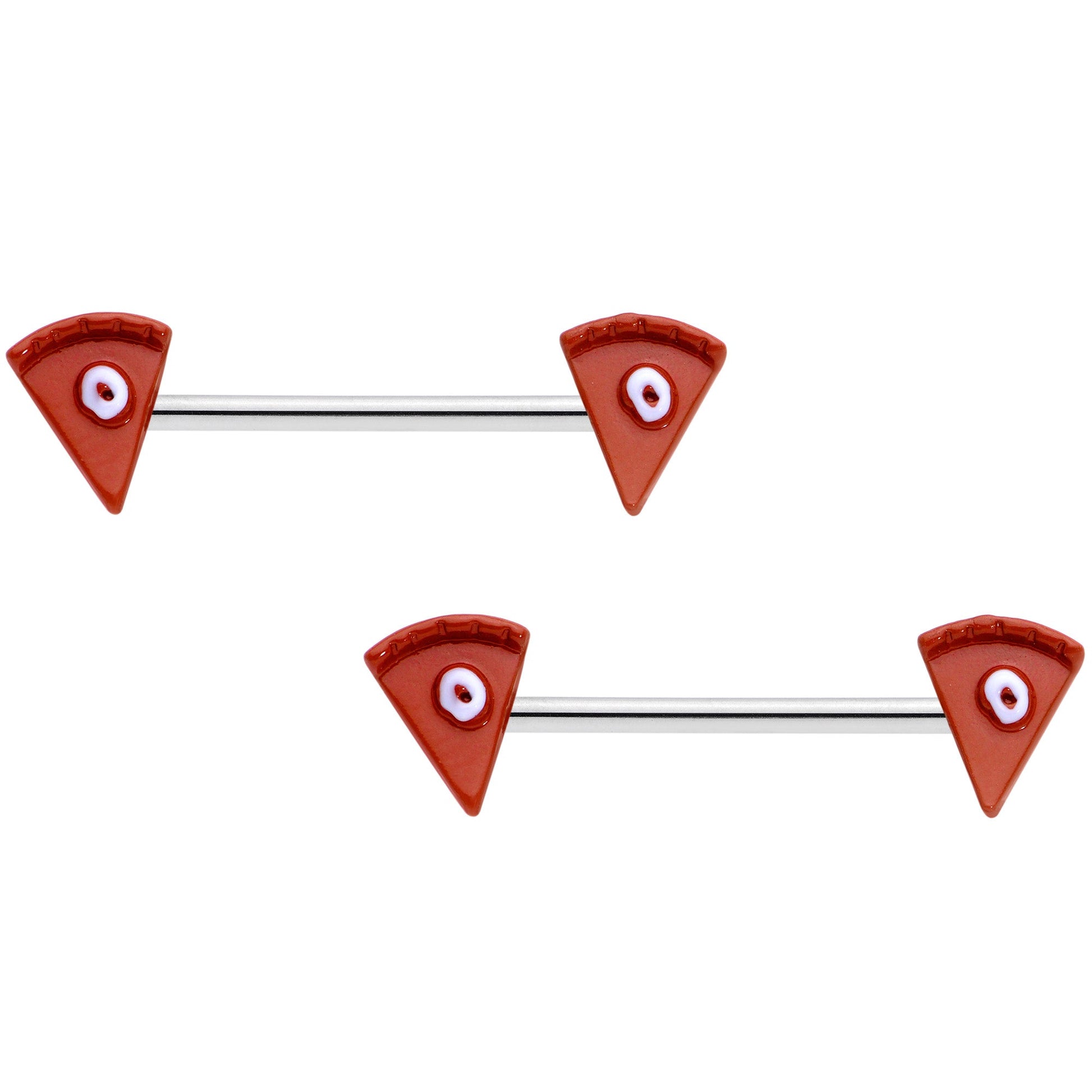 Mmmm.......what's cooking, good looking? Something delicious for the fall season when you're wearing these 14 gauge nipple rings! They're made with 16mm durable 316L surgical grade stainless steel straight barbells. The ends each feature a delicious-looking wedge of pumpkin pie charm embellished with a swirl of white whipped cream on top. This autumn you can give thanks for how gorgeous you look with this tasty little treat in your nipple piercings! Sold as a set of two.Specifications