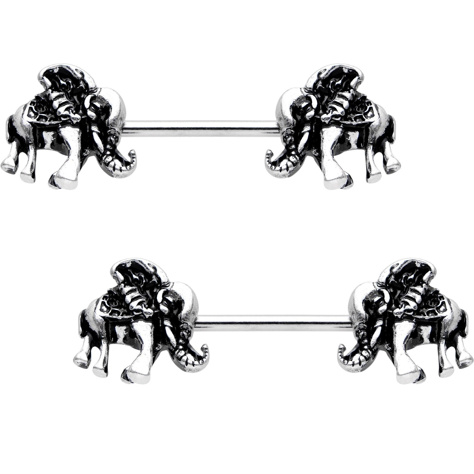 14G 5/8 Resting Elephant Barbell Nipple Ring Set