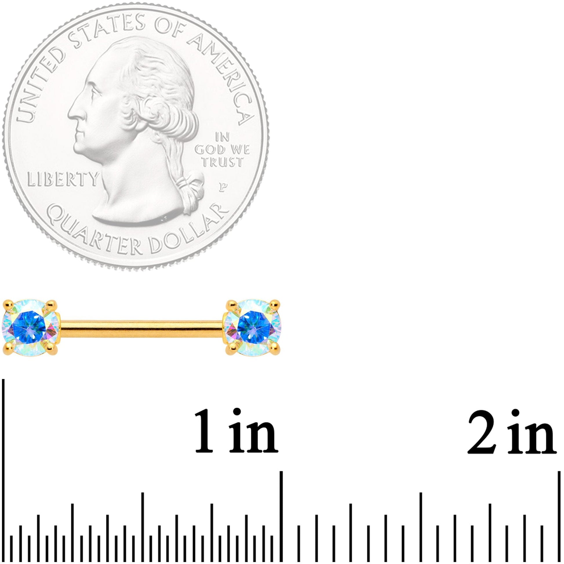 14G 9/16 Aurora CZ Gem Gold Tone Barbell Nipple Ring Set