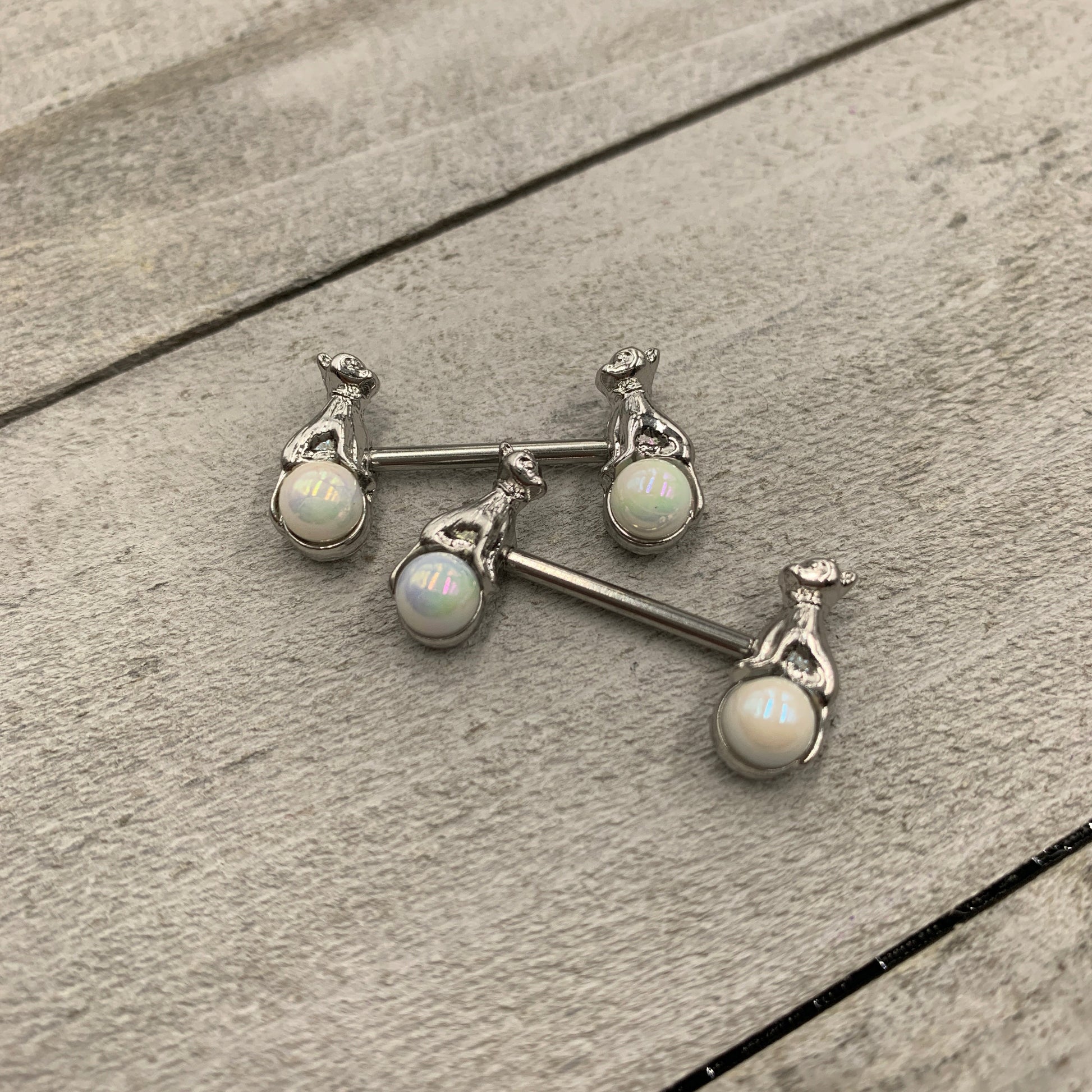 14G 9/16 Aurora Orb Baby Bear Barbell Nipple Ring Set
