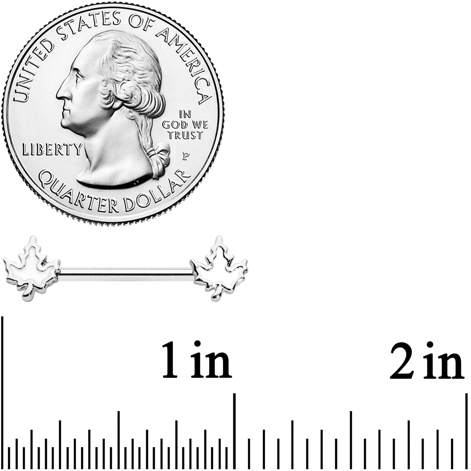 The leaves are changing color....time to celebrate Autumn with this 14 gauge nipple jewelry! It's made with 14mm durable 316L surgical grade stainless steel straight barbells. Each of the ends features a maple leaf charm, inlaid in white - perfect for the oncoming days of Winter! Let the seasons change your look for the better with these elegantly understated maple leaf nipple piercing rings! Sold as a set of two.Specifications