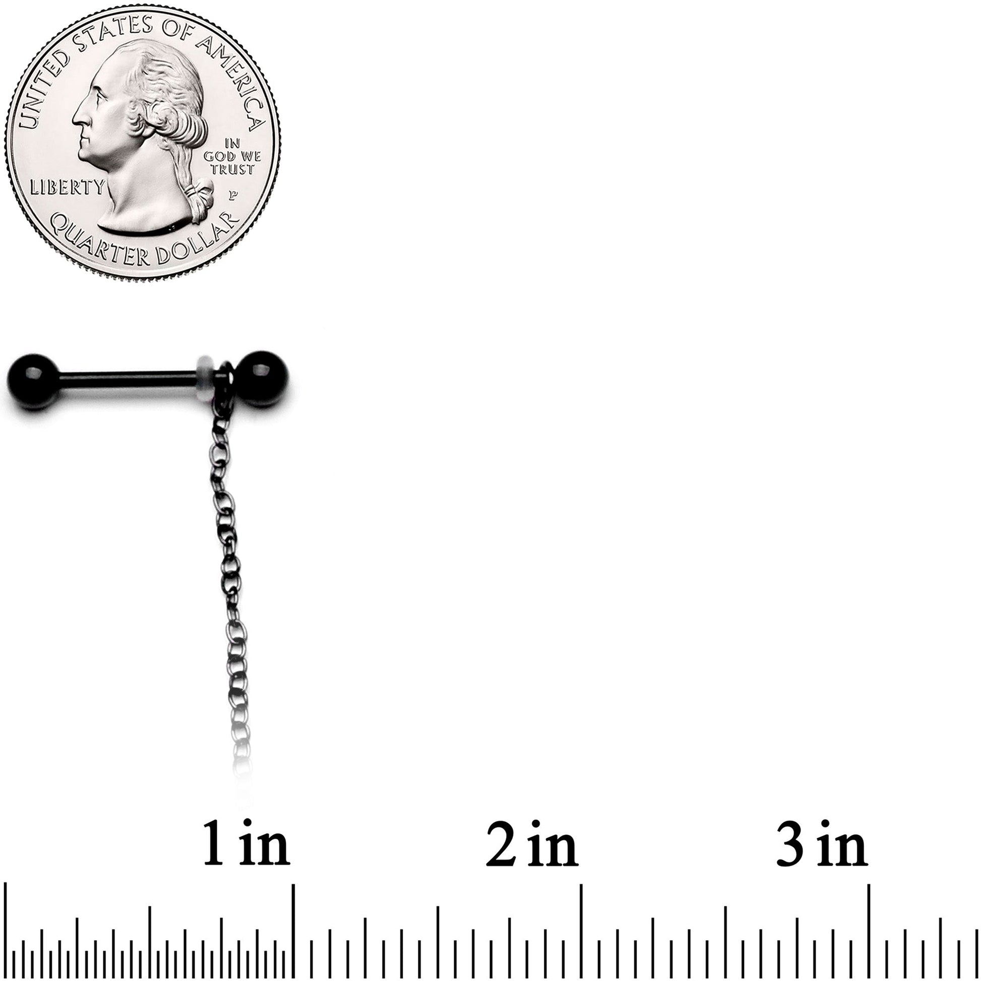 14 Gauge (1.6mm), 9/16" (14mm), Black PVD over 316L Surgical Grade Stainless Steel Straight Barbells, 15" (381mm) Chain Length, 5mm Ball Ends