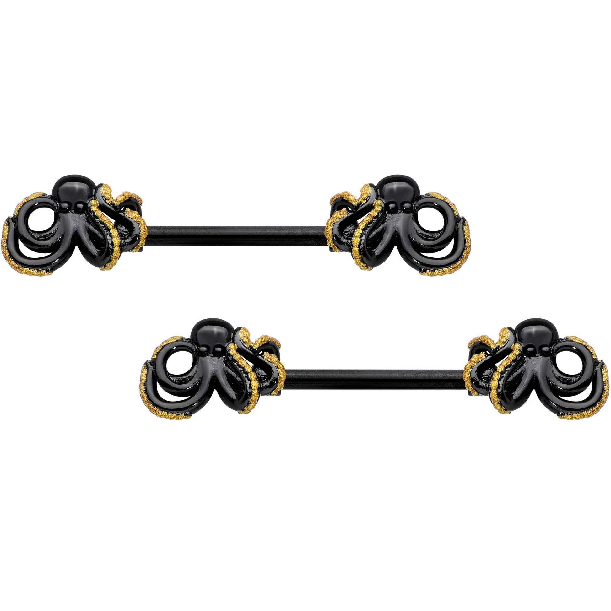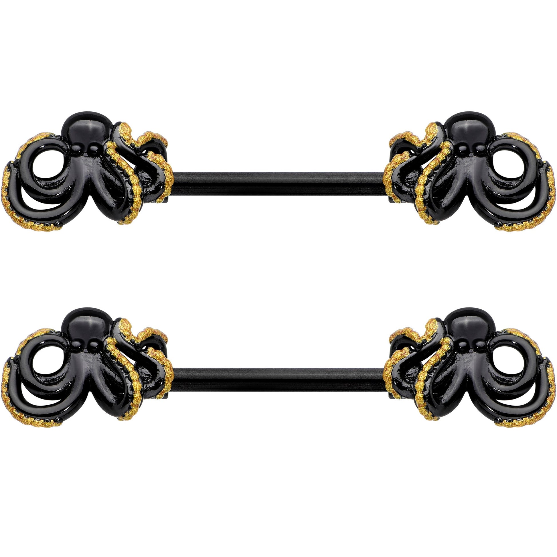 14G 9/16 Black Understated Octopus Barbell Nipple Ring Set