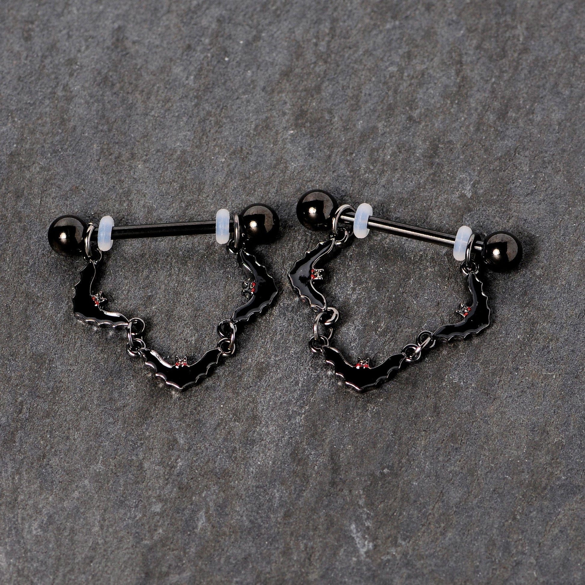 14G 9/16 Black Vampire Bat Halloween Dangle Nipple Ring Set