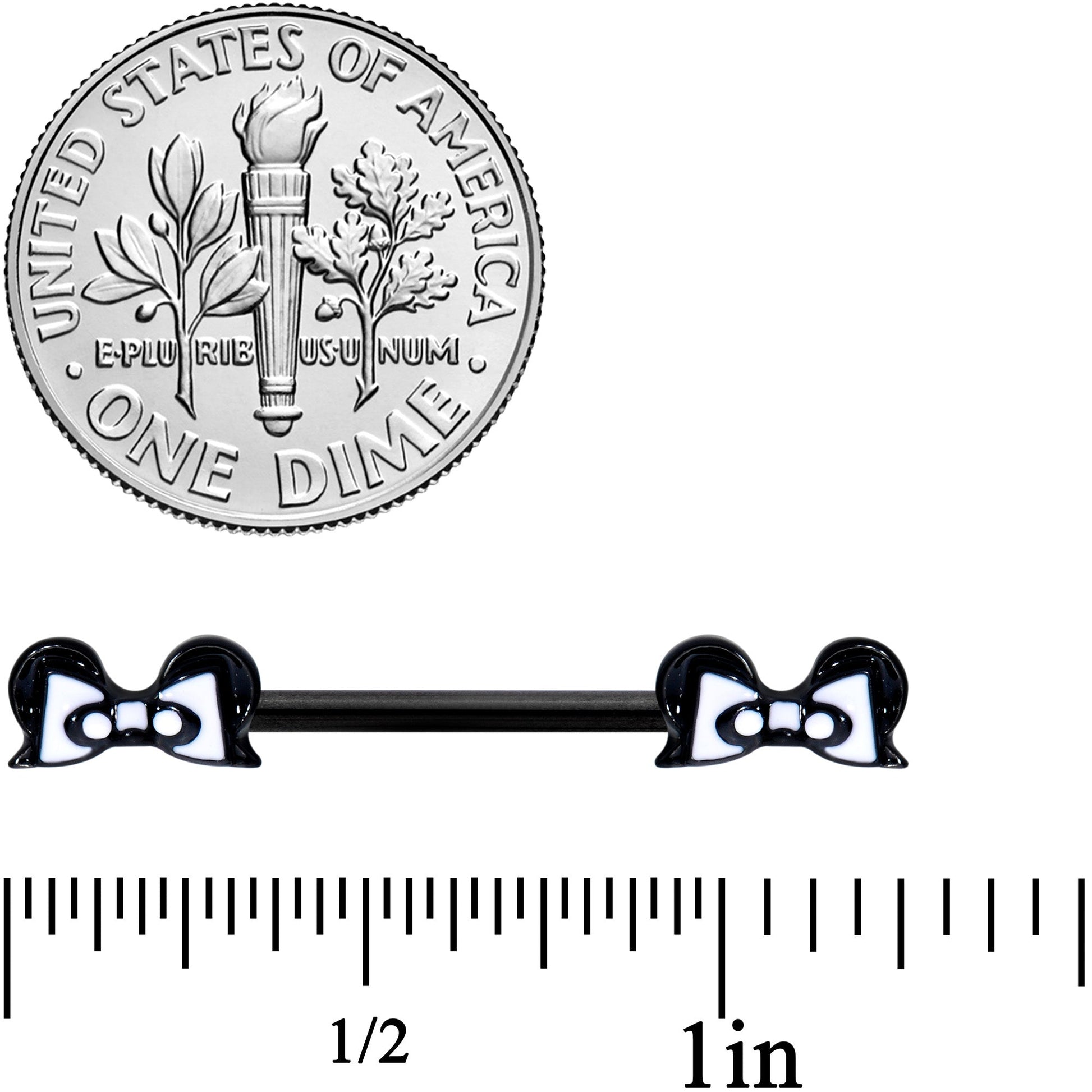14G 9/16 Black White Formal Bow Barbell Nipple Ring Set