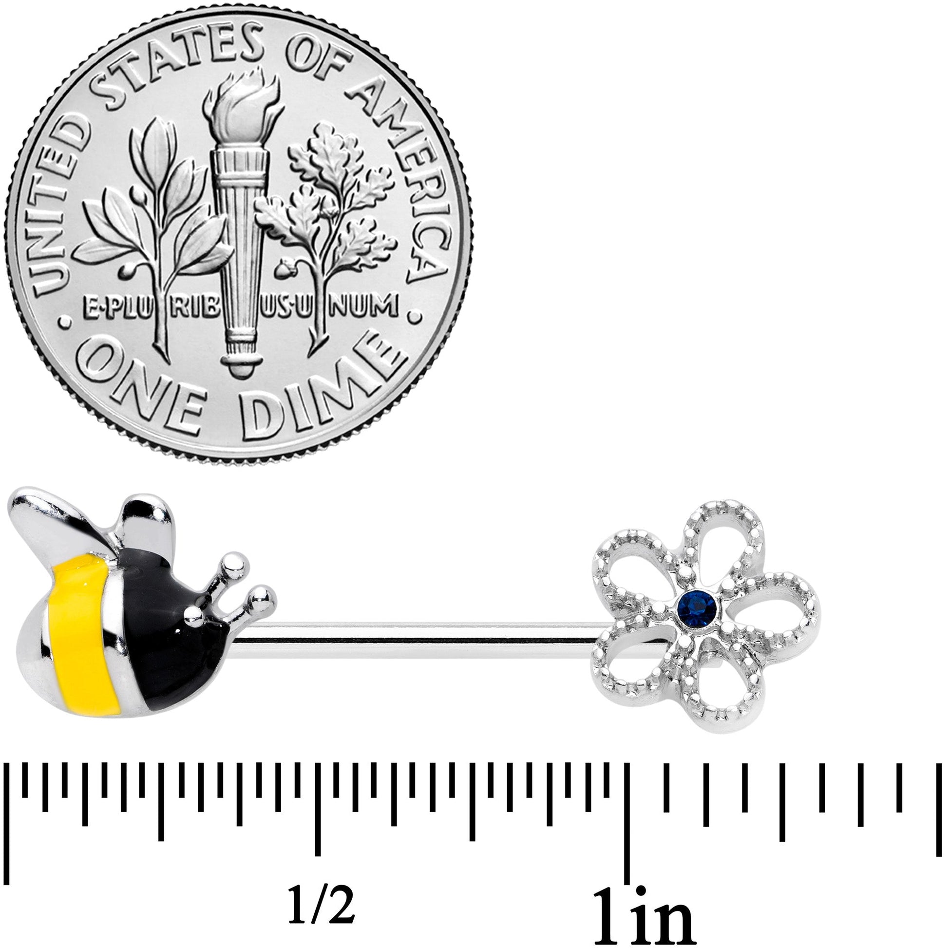 14 Gauge 9/16 Blue Gem Big Bee Flower Barbell Nipple Ring Set