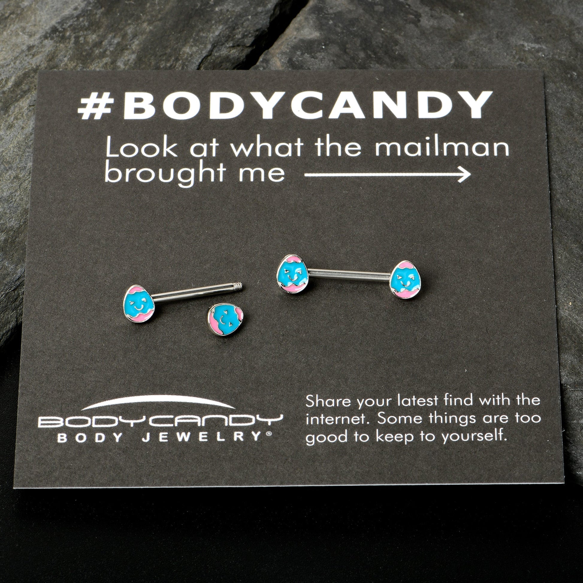14G 9/16 Blue Pink Celebration Easter Egg Barbell Nipple Ring Set