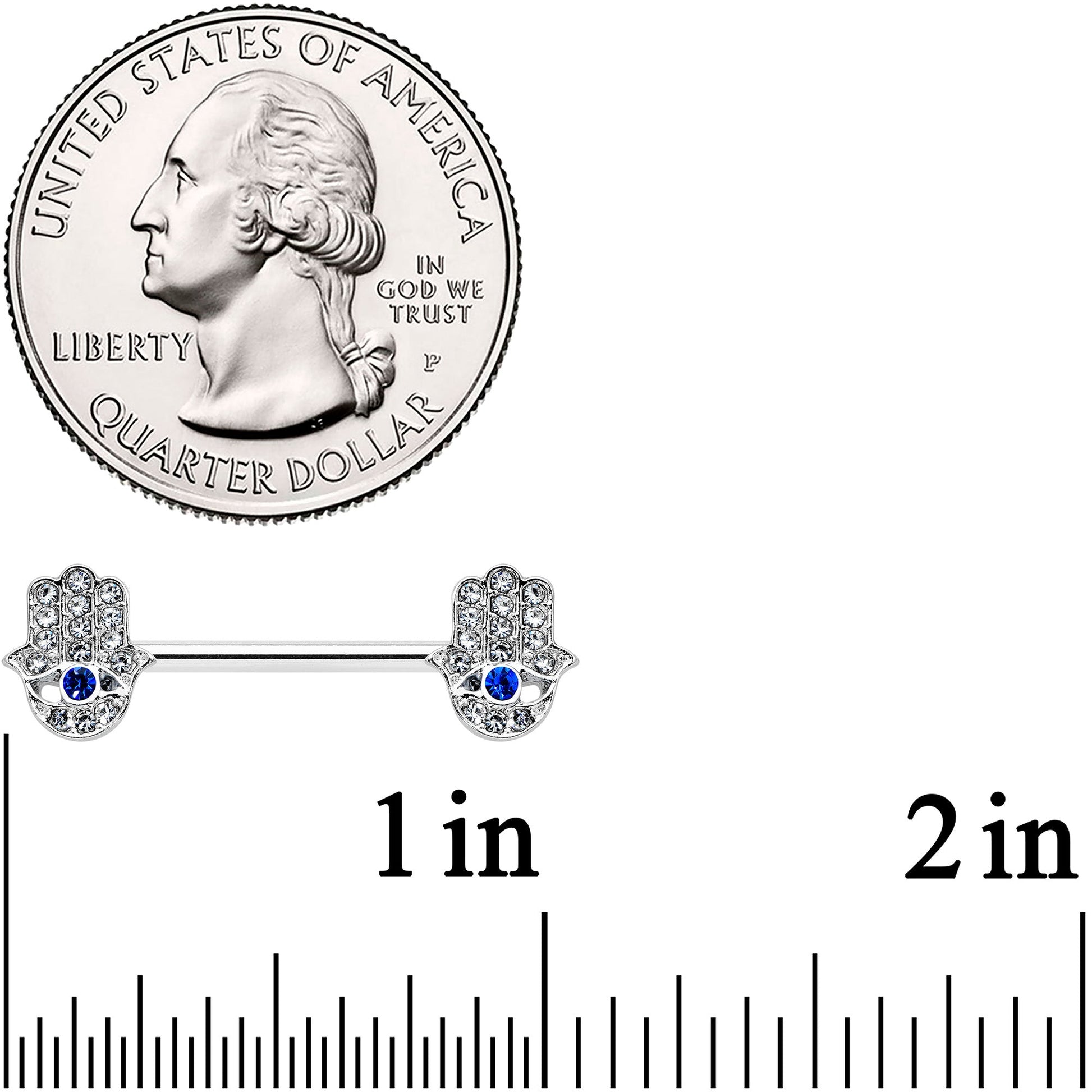 14G 9/16 Clear Blue Gem Eye Hamsa Hand Barbell Nipple Ring Set