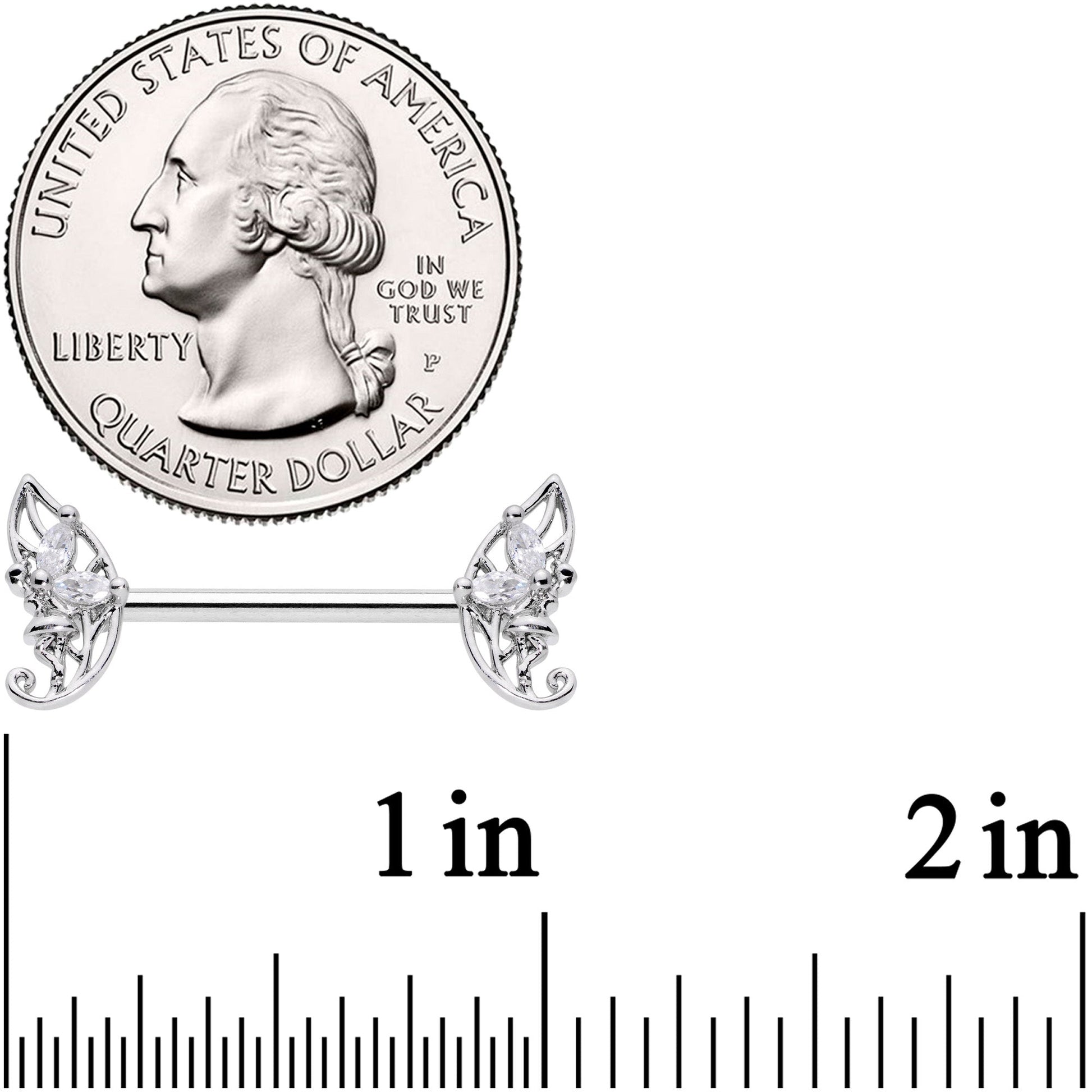 14 Gauge 9/16 Clear CZ Gem Fairy Leaf Barbell Nipple Ring Set