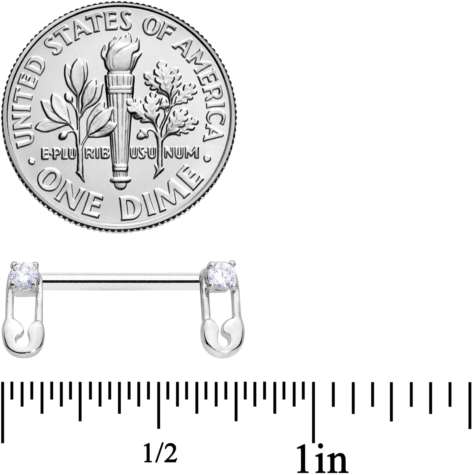 14 Gauge 9/16 Clear CZ Gem Punk Safety Pin Barbell Nipple Ring Set