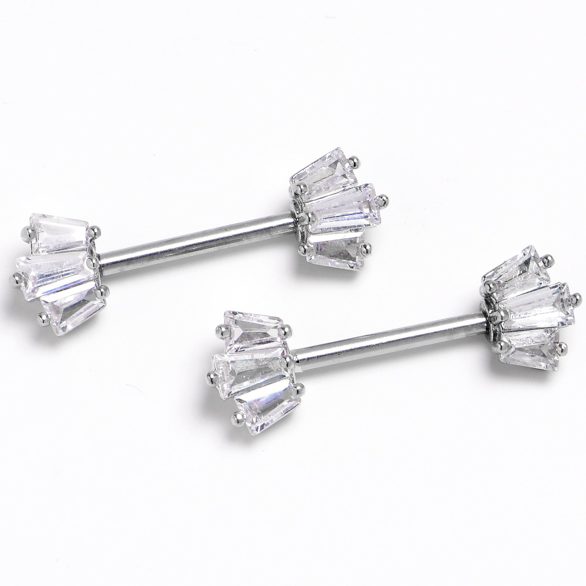 14G 9/16 Clear CZ Gem Regal Rectangles Nipple Ring Set