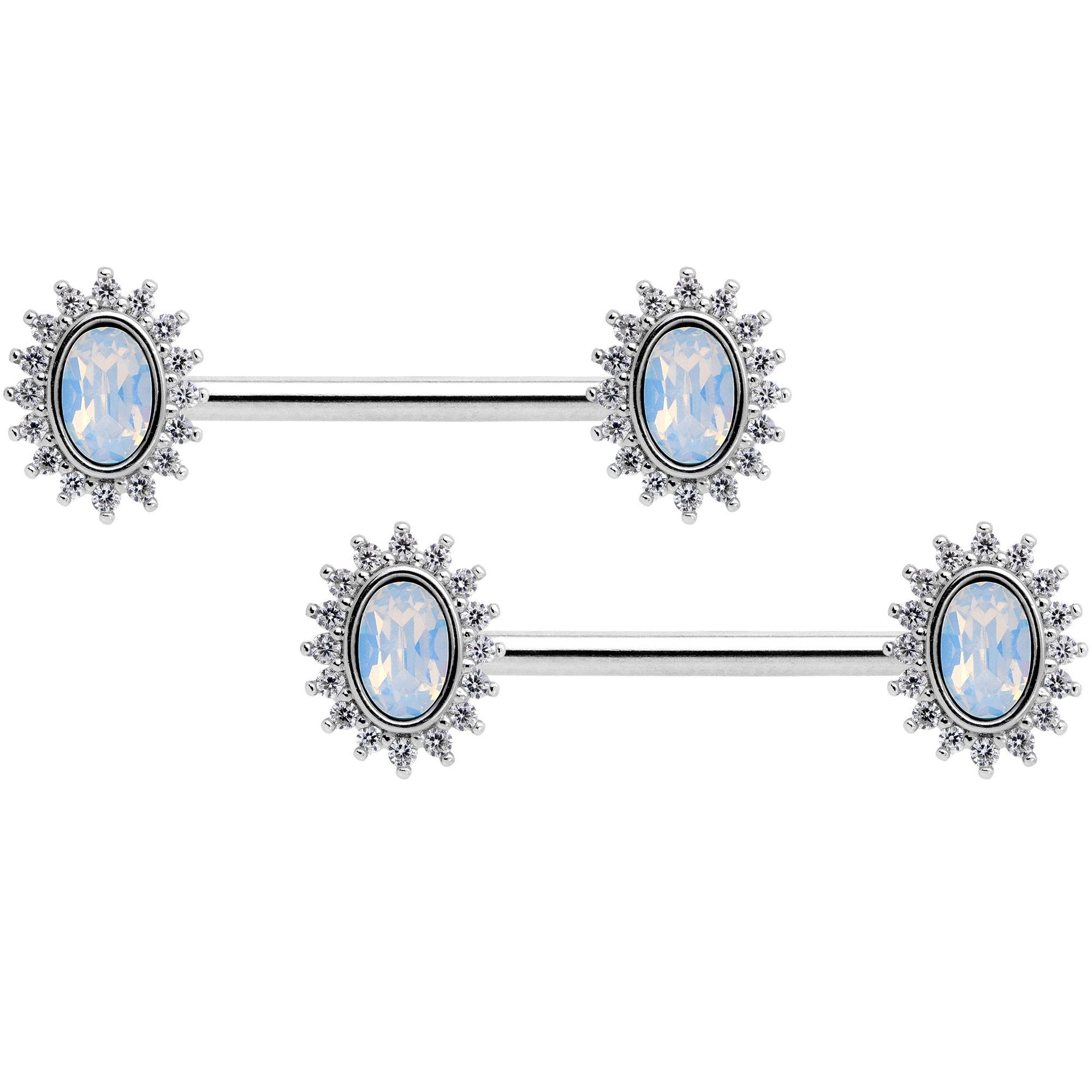 14G 9/16 Clear CZ Gem White Faux Opal Burst Nipple Ring Set
