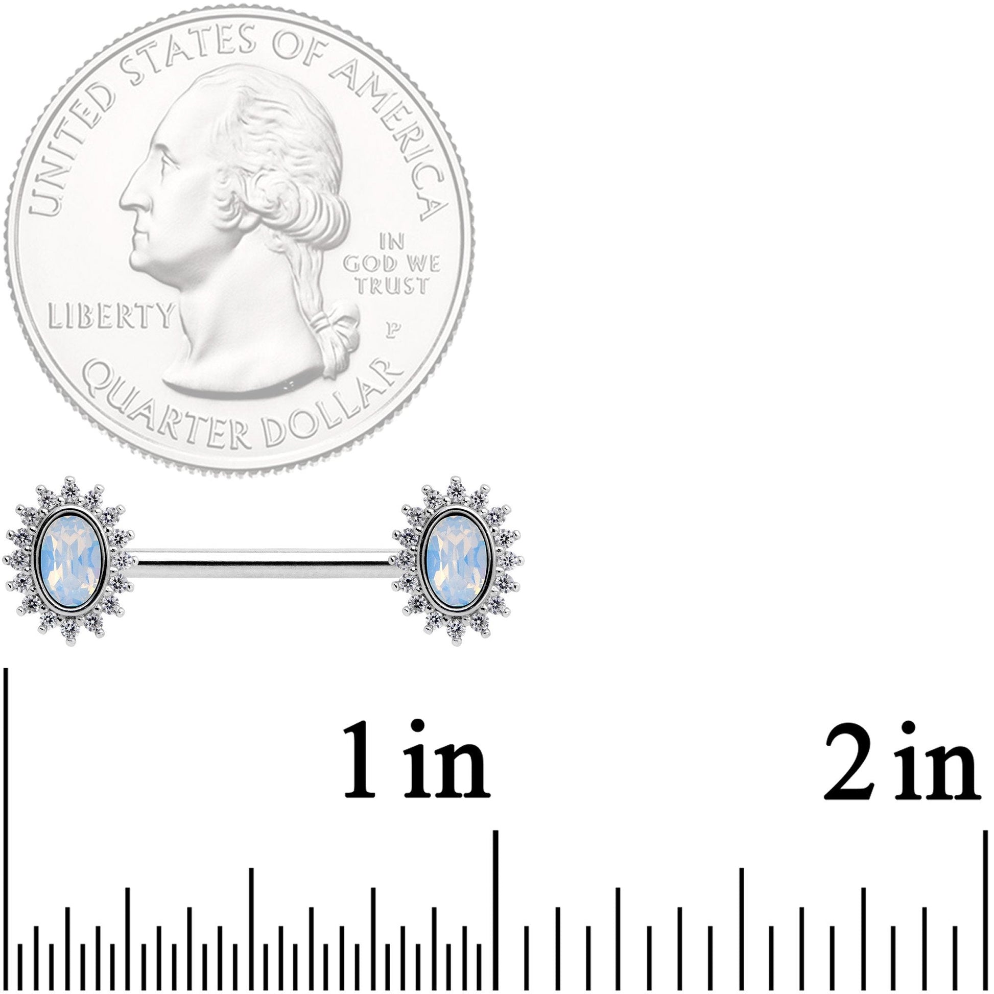 14 Gauge 9/16 Clear CZ Gem White Faux Opal Burst Nipple Ring Set