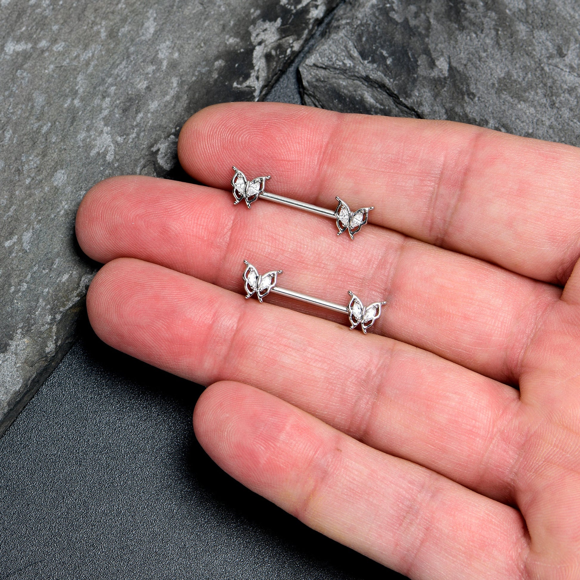 14G 9/16 Clear Gem Fancy Fab Butterfly Barbell Nipple Ring Set