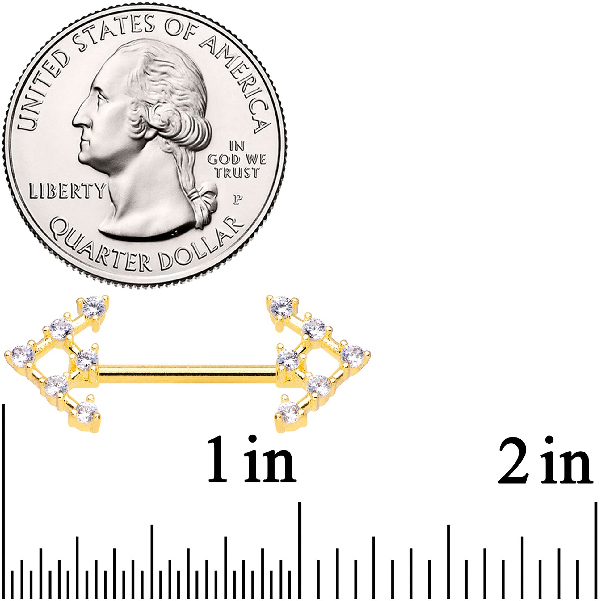 14G 9/16 Clear Gem Gold Tone Arrow Barbell Nipple Ring Set