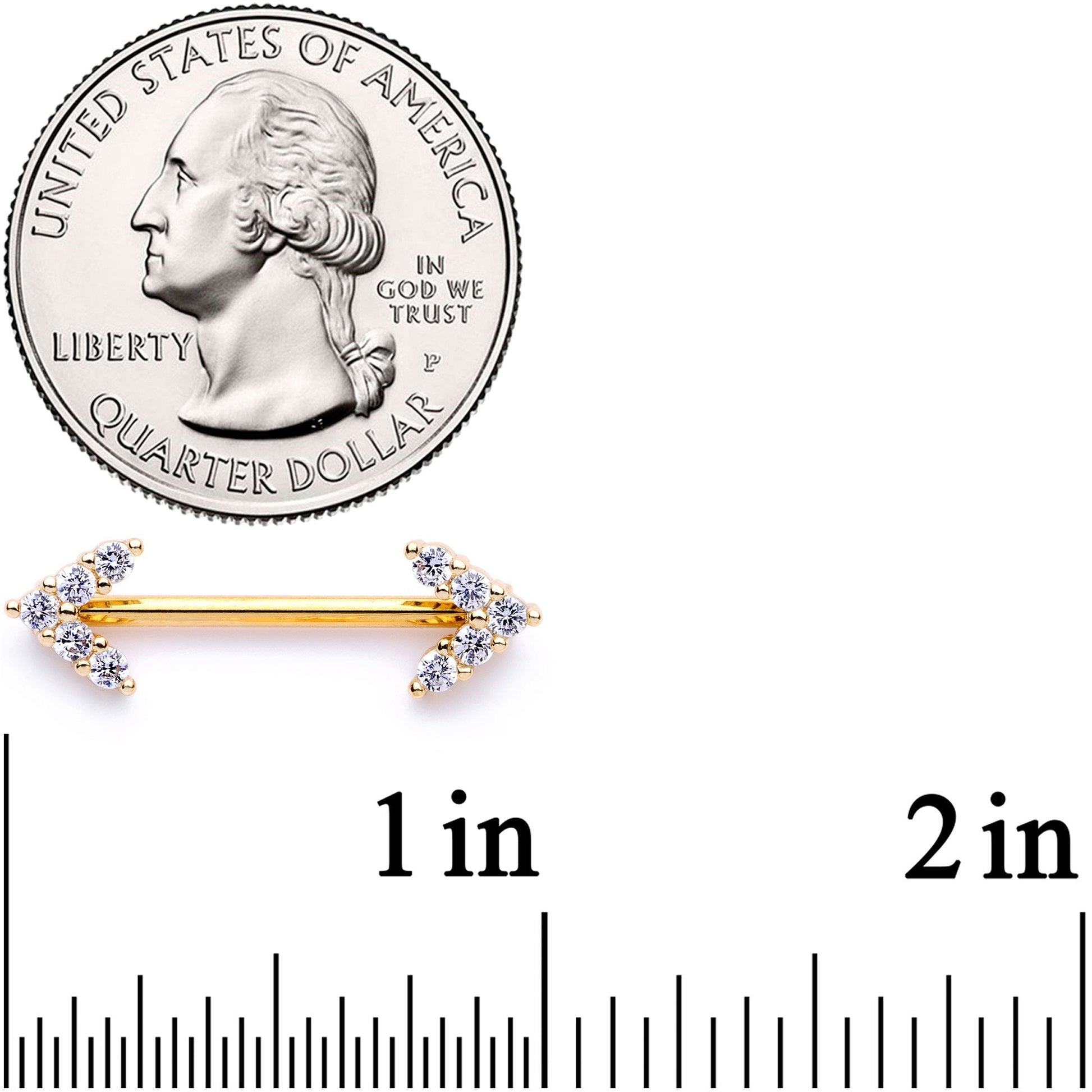 14G 9/16 Clear Gem Gold Tone Arrows Barbell Nipple Ring Set